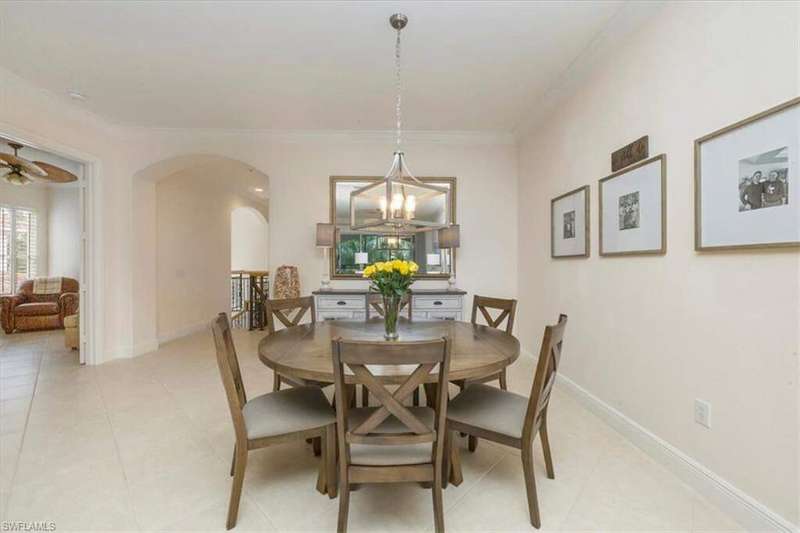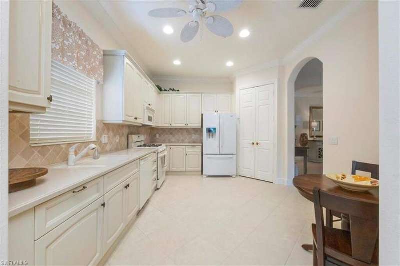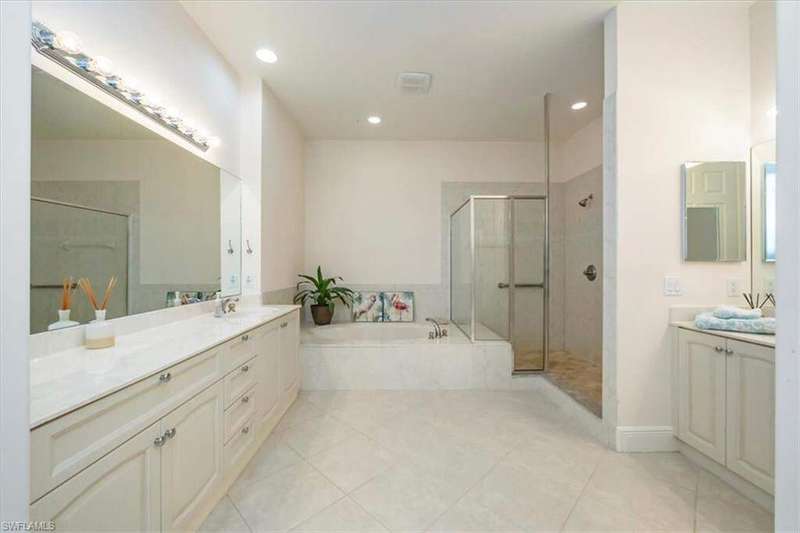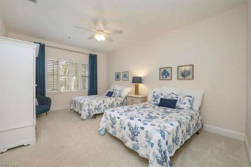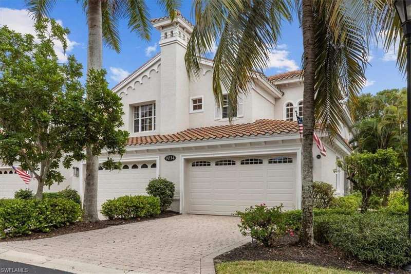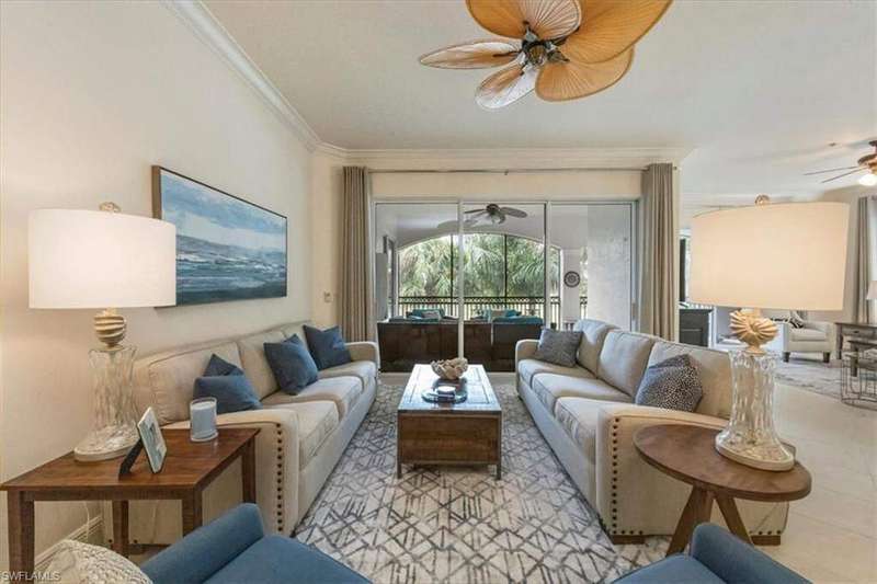Relaxed Florida living meets timeless quality-all within one of Naples' most sought-after gated communities of Fiddler's Creek. Perfectly situated directly across from the Cascada neighborhood pool, Experience the perfect blend of comfort, space, and scenic beauty in this southeast-facing, second-floor end-unit coach home with a private elevator, located in the highly desired gated community of Cascada within Fiddler's Creek. With an abundance of morning sunlight stunning golf and lake views, this residence offers a rare opportunity to enjoy resort-style living at its finest. The open and airy floor plan ideal for both relaxed everyday living and entertaining. Capital portion of the CDD is PAID IN FULL! Highlights include beautiful light tile flooring set on the diagonal, crown molding, high ceilings, and plush carpeting in the bedrooms. The light-filled kitchen features custom cabinetry, under-cabinet lighting, gas cooking, pantry, and Corian countertops and tumbled marble backsplash. The kitchen seamlessly opens to the family room and expansive 12X24 screened lanai, creating a natural gathering space with tranquil lake and golf vistas. The spacious primary suite offers dual walk-in closets, lanai access, and a well-appointed bath with dual vanities, a soaking tub, and a glass-enclosed shower. Two guest bedrooms and a den provide ample room for family or guests, while the laundry room with cabinetry and sink and a spare refrigerator adds everyday convenience. The garage offers a 50 volt charging station for your EV car and a new wireless garage door opener allows easy access in & out of the property. Centrally located within the development, This home provides effortless access to the exceptional & newly renovated amenities of Fiddler's Creek, including a stunning clubhouse, resort-style pool, fitness center, tennis courts, spa services, and fine dining. Don't miss out on this fabulous opportunity!