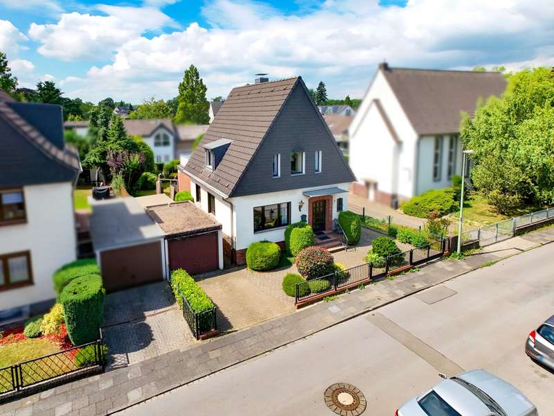 **Detached house within walking distance of the 6-Seen-Platte** The detached family home on offer here is located in an attractive and quiet residential area with optimal infrastructure. The proximity to the popular 6-Seen-Platte as well as the convenient connections to the S1, the A59 highway and short distances to various shopping facilities ensure a high level of living quality. The house, built in 1958, offers a living space of approx. 138 m² and stands on a spacious plot of approx. 564 m². The plot is attractively laid out and has ample space for leisure activities, gardening or as a safe play area for children. Two garages and two additional parking spaces offer convenient parking directly on the property. The property was previously used as a two-family house and therefore offers a wide range of possible uses: In addition to the classic single-family home, use as a two-family home is just as conceivable as a multi-generational home or for a combination of living and working. The 2 units are currently technically separated from each other, with each unit having its own gas heating. While the gas heating for the first floor offers a central hot water supply, the hot water in the upper unit is currently provided by instantaneous water heaters. This ensures a high degree of flexibility of use. The room layout is well thought-out and practical: there are five rooms in total, including four bedrooms/offices and two bathrooms. This layout is suitable for families with children as well as for couples looking for a home office or guest room. The condition of the house largely corresponds to the year of construction. The property is in need of modernization, but at the same time offers the opportunity to realize individual living dreams according to your own ideas. Important trades have already been renewed: the roof was completely re-roofed, insulated and fitted with a vapor barrier in 2004. Around 34 m² of new flooring was professionally laid on the first floor in 2014. The extension from 1976 is insulated. Also worth highlighting is the area with a full basement, which offers additional usable space with a pleasant ceiling height. This area is ideal as a storage room, hobby area or workshop. The property's location combines tranquillity with good transport links. The 6-lake plateau is within walking distance and offers a wide range of leisure activities in the countryside, while cities such as Duisburg and Düsseldorf are within easy reach. We will be happy to provide you with further information and cordially invite you to view the property in person to form your own impression of the many possibilities it offers.