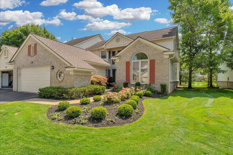 Simsbury III – Sheffield Model at Its Best! This beautifully updated and meticulously maintained 3-bedroom, 3.1-bath home offers the perfect blend of comfort, style, and convenience, featuring a desirable first-floor primary suite and true move-in ready condition. The spacious primary retreat boasts elegant built-ins, a custom walk-in closet, and a spa-like bath with dual vanities, an oversized jetted tub, and a separate stall shower. Upstairs, you’ll find a private en-suite bedroom with walk-in closet and full bath—ideal for guests—along with a second generously sized bedroom currently used as a home office, paired with its own full bath across the bridge walkway. The dramatic great room showcases a soaring 2-story ceiling, abundant recessed lighting, and a granite-surround fireplace. A formal dining room with vaulted ceiling opens to a private patio framed by mature trees for a serene outdoor setting. The inviting front family room/den adds versatile living space, while the custom chef’s kitchen impresses with a large center island and breakfast bar, granite countertops, extensive cabinetry, and thoughtful built-ins. A charming breakfast nook with additional storage completes the heart of the home. Custom built-in furniture was designed, built, and installed by John Morgan of Perspectives Custom Cabinetry, known for creating unique designs tailored to clients’ needs—bringing both craftsmanship and function to every room. Conveniences include a first-floor laundry with direct garage access and an attached 2-car garage. Peace of mind comes with major mechanical updates: new gas forced-air furnace and central air (2024) plus a new gas water heater (2025). This exceptional home in the sought-after Simsbury III community is truly a rare opportunity—schedule your showing today!