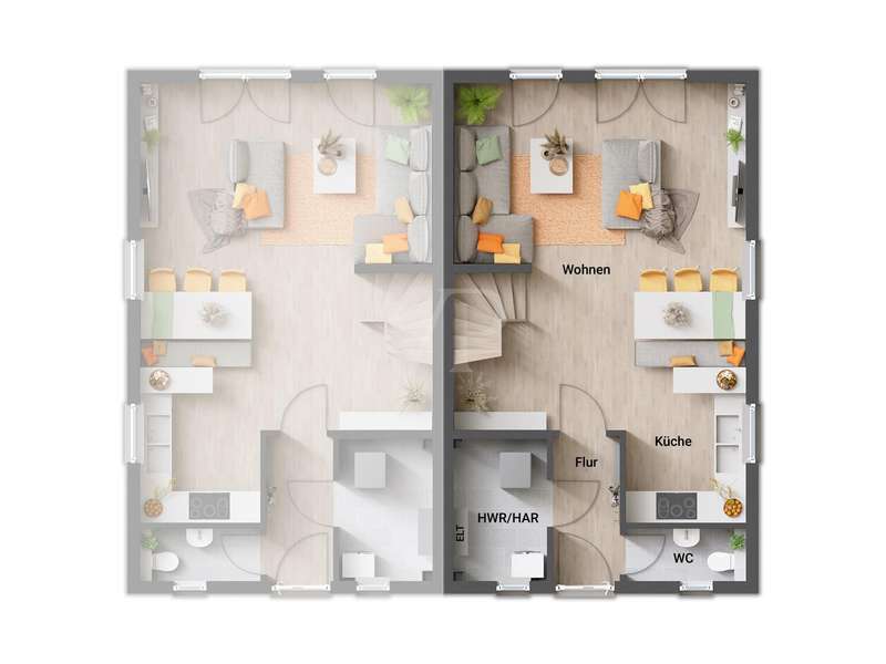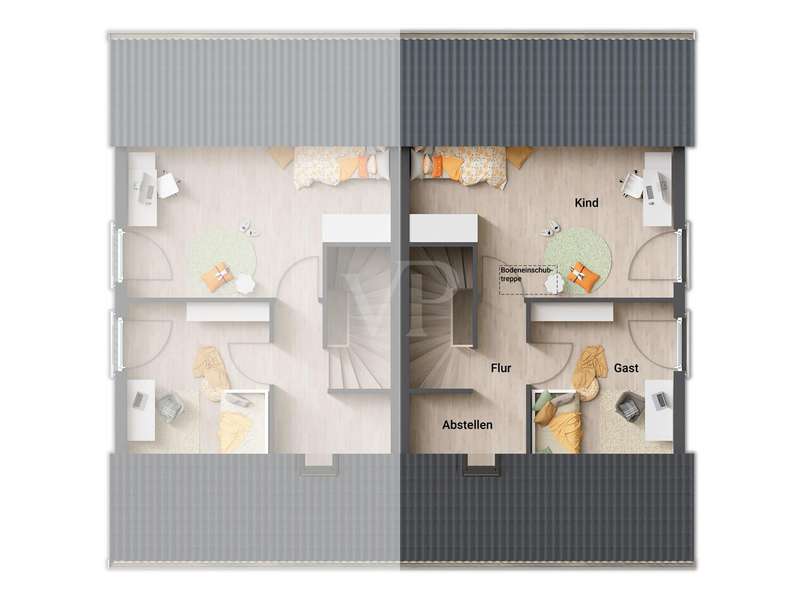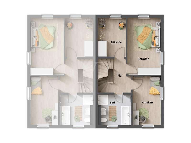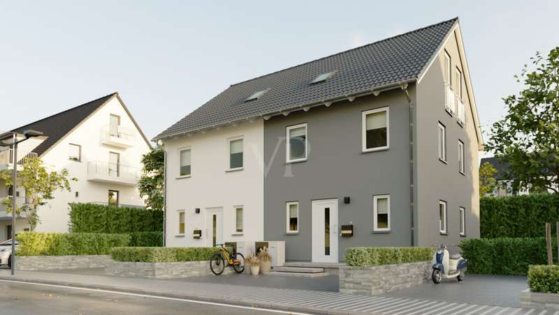 Welcome to this attractive semi-detached house, which is currently in the planning phase. With a living area of approx. 120 m² and a usable area of approx. 140 m², as well as a plot of approx. 526 m², this house offers a well thought-out room concept that combines variability and comfort for a wide range of living requirements. The property impresses with its modern floor plan, which offers a total of six bright rooms and can be individually adapted. The spacious living and dining area forms the heart of the house and invites you to spend convivial hours with family or friends. Generous window areas with mechanical shutters throughout the house provide plenty of natural light and create a pleasant atmosphere. The open-plan kitchen can be individually designed according to your own ideas, creating a place where cooking and enjoying time together becomes an experience. The five bedrooms are spread over two floors and offer flexible usage options. Whether as a children's room, study or guest room - here you can give free rein to your personal needs. A fully equipped bathroom is provided on the second floor, as well as a guest WC on the first floor, both of which will feature high-quality sanitary facilities. Another highlight of this semi-detached house is the innovative building technology. The air-to-water heat pump in combination with the underfloor heating ensures comfortable room temperatures all year round and noticeably increases living comfort. The efficiency of the heating systems also contributes to a sustainable energy balance. The building plans include the installation of modern insulation materials to ensure a pleasant indoor climate and low energy consumption. The sunny plot offers space for your own garden design ideas - be it for a flower bed, a small raised bed or a play area for children. The plot invites you to linger outdoors in the warmer months. There is also a double carport. The furnishings of the house allow for individual freedom in the choice of colors and materials, so that you can realize your personal living ideas. The spacious bathroom and guest WC are fitted with high-quality tiles. Modern electrical installations, LAN connections and other comfort-enhancing details are included in the planning. Secure this modern house at an early stage and benefit from the wide range of design options. We will be happy to answer any questions you may have, provide further information or arrange a personal meeting. Make an appointment to find out more about this new-build project!