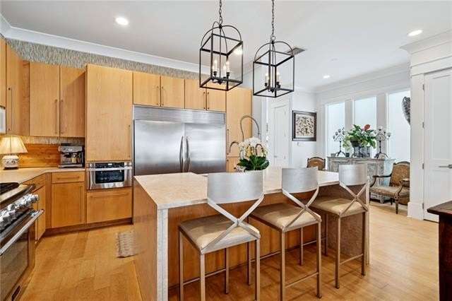 Sophisticated 3-Bedroom 3.5 bathroom home with luxe finishes & outdoor living nestled in the Golden Rectangle that blends high-end design with effortless livability. Set behind a private gate with off-street parking for two, this home offers both sanctuary and style in every detail. Step into a warm and inviting living room that flows seamlessly from the kitchen, creating the perfect space for both relaxing and entertaining. Anchored by a beautifully designed fireplace, this space offers a cozy focal point and a natural gathering spot for family and guests alike. Large windows bring in an abundance of natural light. The heart of the home — a chef’s kitchen — features marble countertops, custom cabinetry, and a full suite of stainless steel appliances, perfectly suited for both quiet mornings and dinner-party hosting. Each bedroom is a private retreat with its own en-suite bath, offering spa-like comfort and modern sophistication. The primary suite is a standout, with generous proportions and serene finishes designed to elevate daily living, including a private sitting room. Step outside to experience a cozy deck for year-round enjoyment. Outfitted with a second fireplace and enough space for both lounging and entertaining, this outdoor haven is where comfort meets connection — whether it's a summer movie night or a chilly fall gathering with friends. Smart living comes standard with a fully integrated security system, ensuring peace of mind without compromising aesthetics. Stylish, secure, and perfectly tailored for both quiet moments and lively gatherings, this home is a rare opportunity to live beautifully — inside and out.
