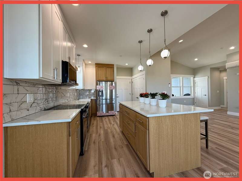 New Coastal Elegance at Ocean Shores, WA! LEGAL SHORT TERM RENTAL near beach access via Tonquin Ave or ship canal park. 1,365 sf residence features 2 BR 1.75 BA and a 1-car garage. Open concept great room with stack-stone fireplace flanked by built-in cabinets. 9' ceilings. Statement lighting. Spacious kitchen with 3cm Quartz slab countertops, stainless appliances, and an island with wine storage. Dining w/access to the back covered deck. Private primary ensuite with coffered ceiling, walk-in closet, door to deck, and bathroom with tiled shower. An additional sunny bedroom and full bathroom complete this plan. Mini-split AC/Heat. Plumbed for EV/RV. Wired for a hot tub. Hot/cold exterior spigot. Landscaped front. RV parking. 7,299 sf lot.