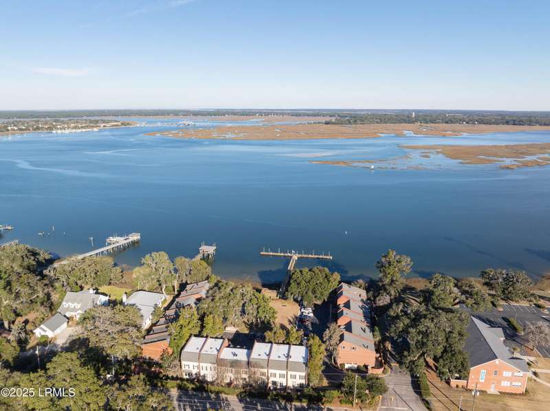 A Boater's Delight with direct access to a community deep-water dock, this turn key 2-bedroom, 2 ½ bath townhouse, is located in a one-of-kind, desirable, gated enclave and ready for new owners. Enjoy magnificent views of the intracoastal waterway and downtown Beaufort as you experience living in the heart of the Lowcountry! Features include: unlimited possibilities for the 3rd floor FLEX SPACE, beautiful hardwood floors throughout, crown molding, custom built-ins, a fireplace, transoms, Corian countertops, stainless appliances, plantation shutters, and a recently renovated patio. What a great place to call home! Schedule an appointment to see this gem today. What a dream. Is it yours? A virtual tour is available!