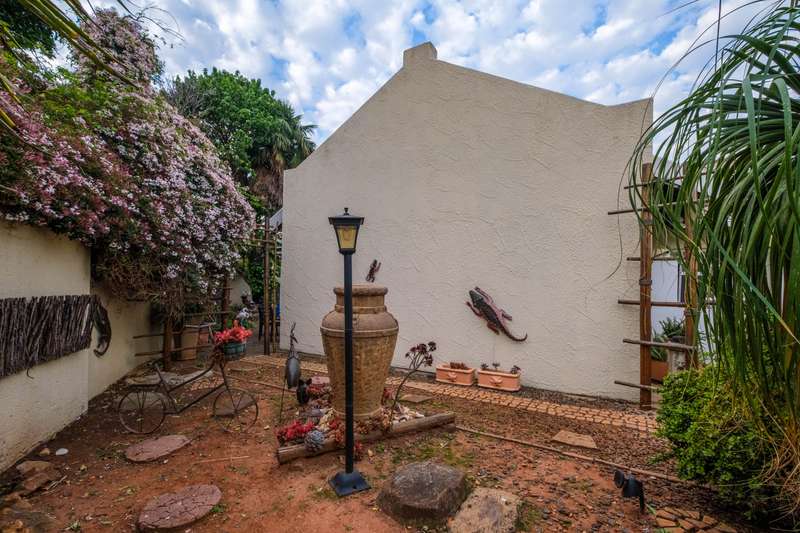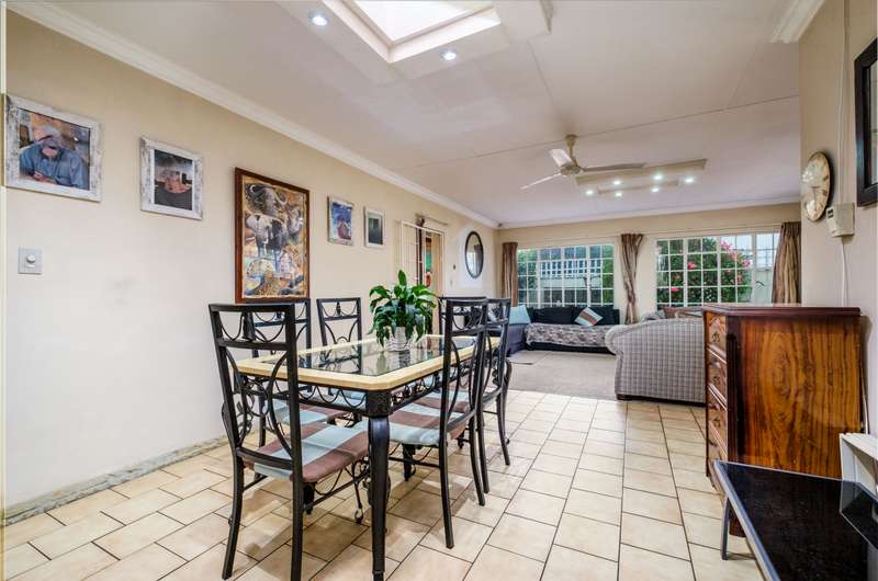 Charming cluster family home now up for grabs! Spacious open plan lounge & dining room. The enclosed sun-room is fitted with slider doors that open onto paved entertainment area. The colour-full wrap-around garden further invites you to explore lots of special features, plus nooks & crannies. The well-fitted kitchen offers a gas hob, pantry cupboard & there is an outside laundry facility. 3 Comfortable bedrooms of which, two are north facing & 2 bathrooms (main En-suite). Outbuildings: Double automated garage with direct access & a separate entrance leads to large covered carport for additional secure parking. Extras: Pre-paid electricity meter; Fibre connection; back-up JoJo tank & alarm system. The property is well placed with-in the Estate & the setting is private. If you are looking for a secure, but still spacious home – look no further. Call now to arrange for a private viewing!