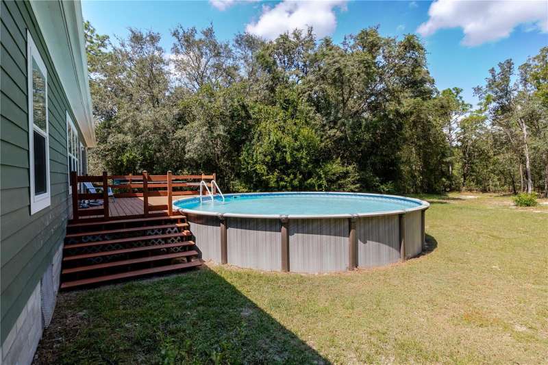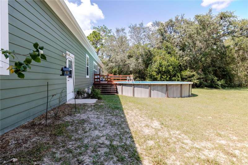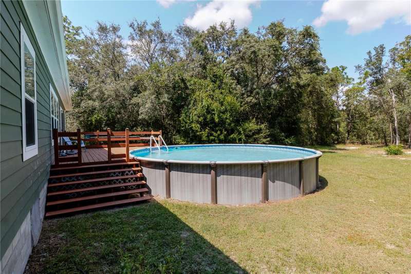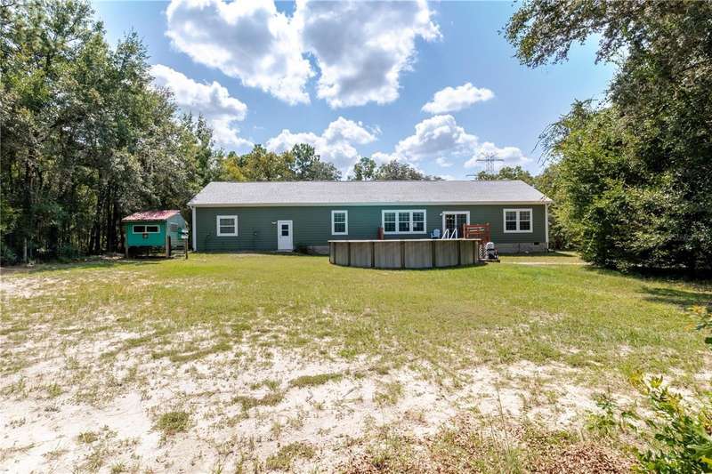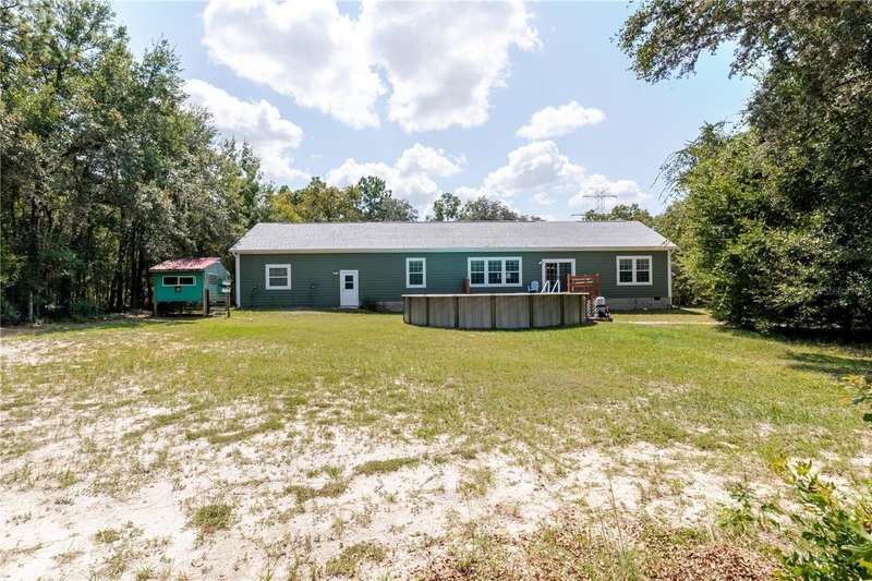 Under contract-accepting backup offers. Welcome to 4015 Grover Cleveland Blvd, a rare opportunity to own 6.25 (1323'x206') fully fenced acres in Homosassa, Florida. This property features a 2017 Champion-built modular home with poured concrete stem wall, 2x6 construction, and Hardie board siding for durability and peace of mind. Inside, you'll find four spacious bedrooms and three full baths, including a massive owner's suite measuring 15 by 15 feet, paired with a luxurious 15 by 12 bath complete with soaking tub, walk-in shower, and double vanity. The home offers 2,207 square feet of air-conditioned living space and a two-car garage. A separate family room sits adjacent to the fourth bedroom, ideal for guests or multi-generational living. The chef’s kitchen is outfitted with honey oak cabinets, a tiled backsplash, a breakfast bar, and a formal dining area—perfect for hosting and everyday comfort. All additional bedrooms are generously sized at 14 by 12 feet, offering plenty of room to spread out. Step outside to enjoy a rear deck and an above-ground pool, plus a 12 by 20 shed and an RV carport equipped with a 30-amp breaker and water hookup. The newly installed crushed asphalt driveway adds a polished touch to the property’s entrance. Animal lovers will appreciate the multiple pens and chicken coops, and the property sits next door to county land with direct access to horse trails. Best of all, there’s no HOA, no CDD, and the property is not in a flood zone. You’re just minutes from dining, shopping, and the Suncoast Parkway, making this private retreat both peaceful and practical.
