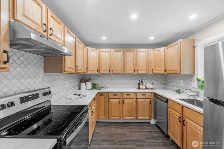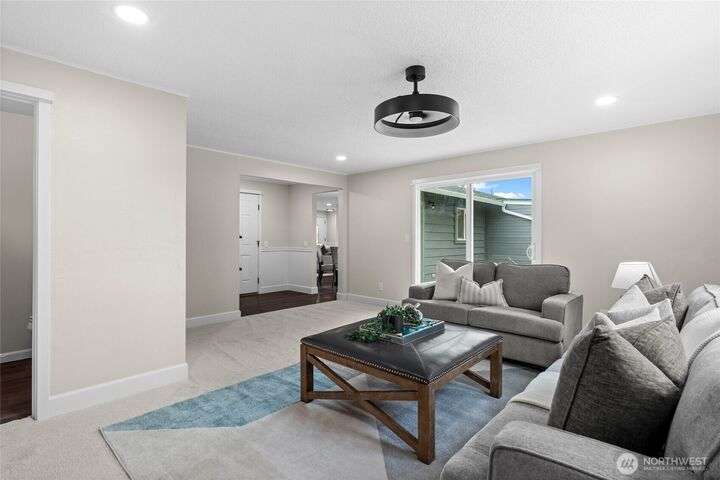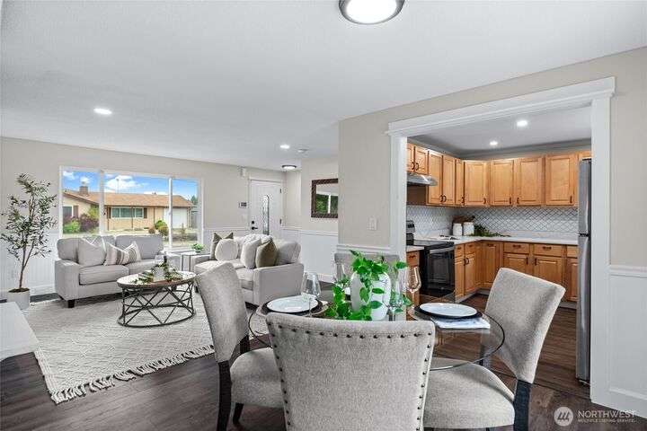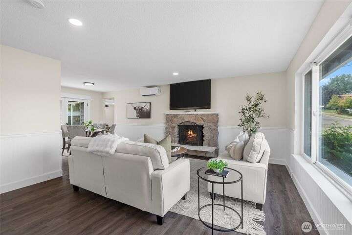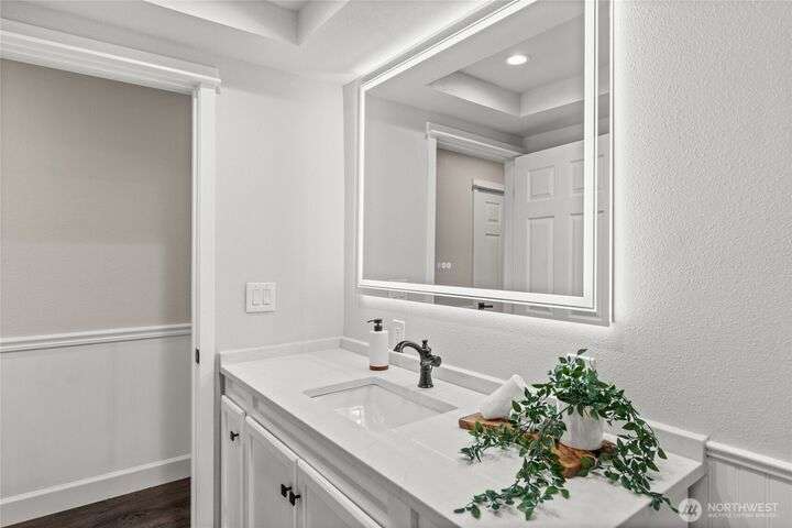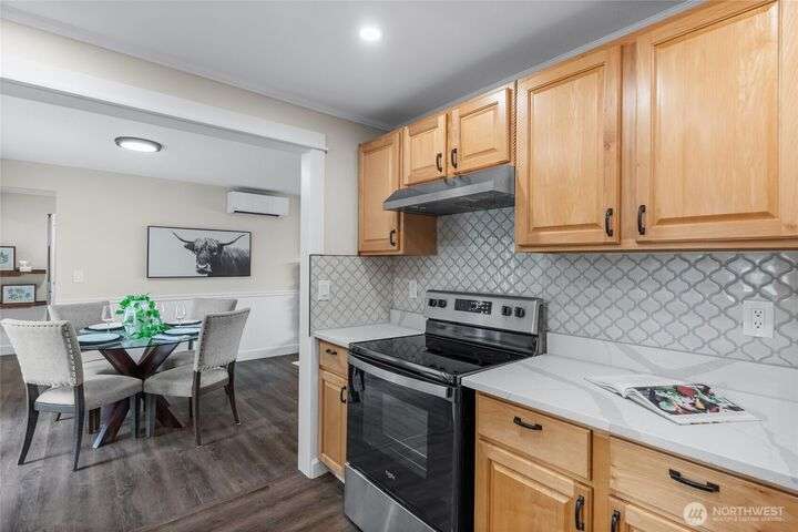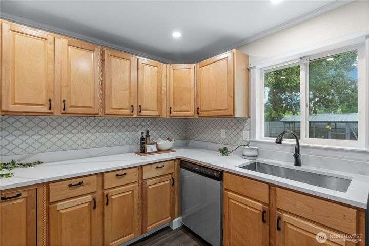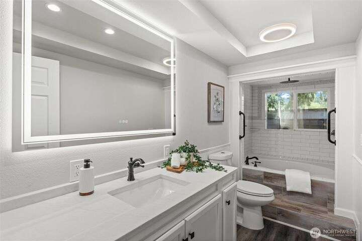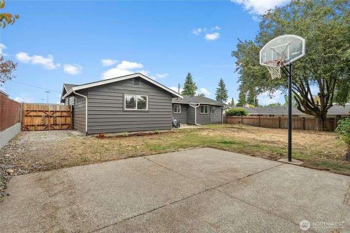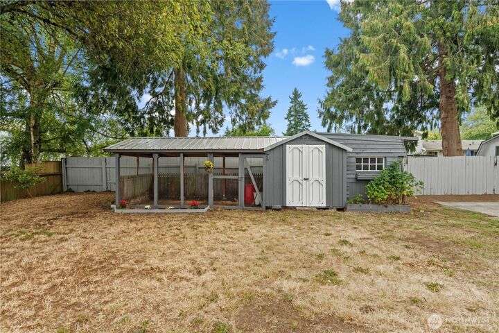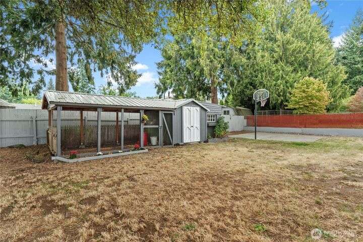 Fully updated and ready to move in! This charming 3-bedroom home in a quiet North Tacoma neighborhood has been refreshed top to bottom—inside and out. The bathroom features a new vanity with quartz counters, custom tile, updated flooring, and new lighting. The kitchen shines with quartz countertops, tiled backsplash, and warm wood cabinets. French doors lead to a huge backyard with a bonus outbuilding—perfect for crafts, a chicken coop, or a pet enclosure. A great mix of character and modern updates in a fantastic location!