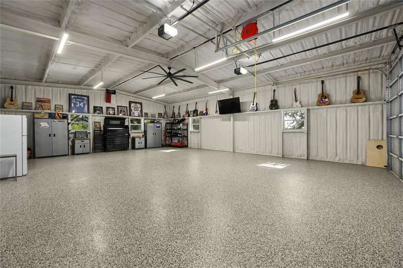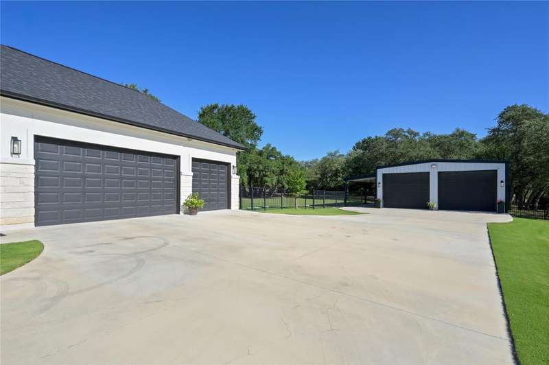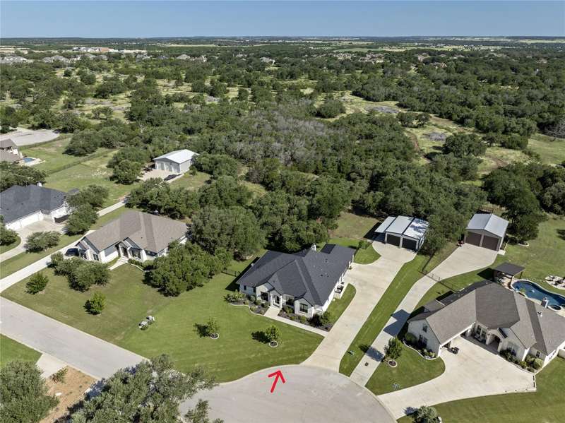 Prepare to fall in love with this immaculate single-story home on a prime cul-de-sac lot! Tucked peacefully into a small neighborhood with NO HOA. Over an acre of fully manicured, cleared and usable space with an abundance of canopy lifted trees! Loaded with the best upgrades and thoughtfully designed for easy living! Enjoy the massive, red-steel shop with spray foam insulation on a 40' x 40' slab including a 10' x 40' covered porch. All patios and garages are finished with the most durable PennTek coating available. Great backyard for a pool! Septic and 500 gallon buried propane tank are strategically located away from center of backyard! Top of the line Kinetico whole house water softener with fully filtered RO system at sink, provides the best water! Inside, you will find 4 spacious bedrooms, a dedicated office, and two dining areas--all beneath soaring 10 to 12 ft ceilings and framed by 8 ft doors that give the entire home a grand, open feel. Floored attic plus a secondary attic fully spray foamed. Super energy efficient and low maintenance home. Enjoy the new HEB opening soon, Lake Georgetown, Historic Downtown Square, and San Gabriel walking trails. Easy commute to I-35, 183, & 130!