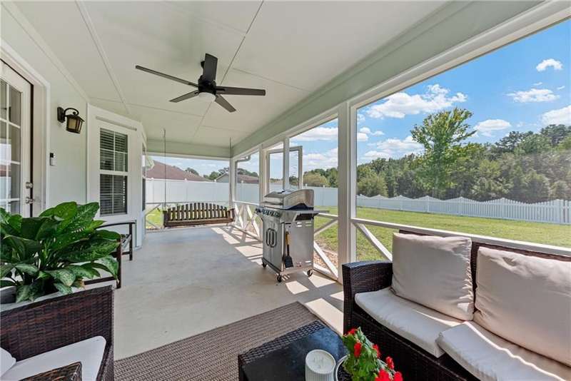 Beautiful 4-Bedroom, 2-Bathroom Home in Lake Forest. Welcome to this stunning split-floorplan home located in the sought-after Lake Forest neighborhood. With no carpet throughout, youll enjoy easy maintenance and style with wood-look flooring and tile in every room. Come inside to find high ceilings and recessed lighting that create a spacious and welcoming atmosphere. The home features both a formal dining area and a cozy breakfast nook, perfect for everyday living and entertaining. The kitchen is complete with stainless steel appliances, granite counter tops, a custom pantry with barn doors, and ample counter and storage space. The primary suite is a true retreat, featuring tray ceilings, a double vanity, a jetted soaker tub, a separate tiled shower, private water closet, and a walk-in closet with plenty of shelving. Enjoy peaceful evenings on the screened-in back porch or relax on the charming covered lanai, all overlooking the vinyl-fenced backyard and tranquil pond view. Conveniently located just: 1.6 miles from the elementary school, 1 mile from the middle school, 1.5 miles from Chick-fil-A, and just 8.5 miles from Kings Bay Naval Base. This home has it all - comfort, style, and location!