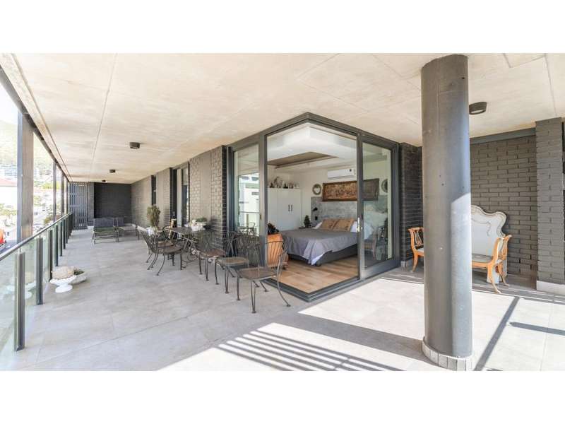 A bold departure from the typical Atlantic Seaboard apartment, this contemporary one-bedroom unit for sale has been designed to maximise location, lifestyle, and space. A wrap-around balcony enhances the interior, creating a sense of open-plan living.