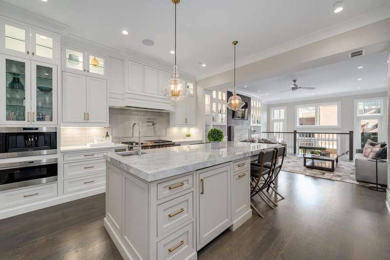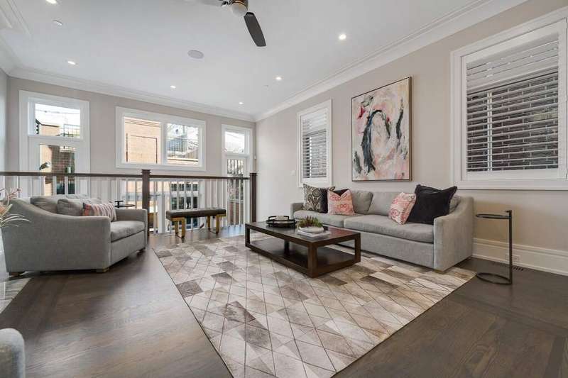 Meticulously maintained Platinum Homes resale with truly unbeatable Chicago skyline views! Located on the coveted east side (not on "L") of beautiful, lush Bissell Street! Completed in 2016, this elegantly designed limestone and brick home offers the ultimate in luxury living. Up to the minute finishes with ECO2 Lutron lighting, triple zone radiant heat, snowmelt on both the front and back patio all controlled through the convenience of your smart phone. Intricate millwork, poplar moldings, custom shutters and white oak plank flooring with herringbone inlay on the main level allow for a true air of sophistication. Step inside, where a gracious foyer welcomes you this outstanding open floorplan. Boasting a formal living and dining room with oversized west facing windows and a gorgeous, stone fireplace. Natural light pours through the main level with west, south, and north facing windows. Entertaining is truly easy in the sleek white kitchen boasting quartz countertops, a custom oversized statutory marble island, Wolf range and coffee maker, two Bosch dishwashers, SubZero fridge and freezer, fantastic pantry and storage space, plus a well-equipped butler's pantry with a u-line beverage center. East facing windows overlooking the incredible outdoor space is the focal view of the great room with custom built-ins surrounding a second marble fireplace. An extension of your home's living space, the adjacent back patio offers an outdoor kitchen with a woodburning fireplace and ample room to dine, relax, or play, plus access to the heated 2.5 car garage. The built-in mudroom area makes for easy in and out access with smart storage solutions. A powder room and ample storage space complete this level. Three ensuite bedrooms make up the second level, including the relaxing primary suite boasting dual walk-in closets, and a marble spa bath with dual vanities, an oversized soaking tub and steam shower. A fantastic laundry center with a sink and great storage space can also be found. Find the most magnificent views of the city just one floor up on your huge penthouse level roof deck! Opening up to an exceptional rec room with a wet bar and a huge guest bedroom and full bath. The lower has it all, featuring high ceilings, a generous family room with great built-ins, a third wet bar, two nicely sized bedrooms, a full white bath and secondary laundry. Perfect location in the heart of Lincoln Park, within walking distance to wonderful restaurants, parks, and Sheffield/Armitage shopping, plus in Oscar Mayer School District!