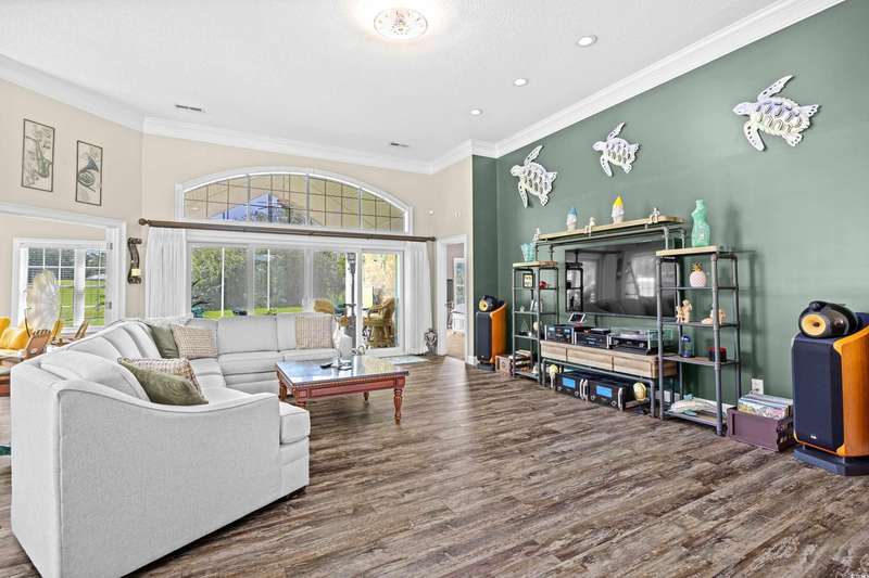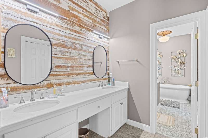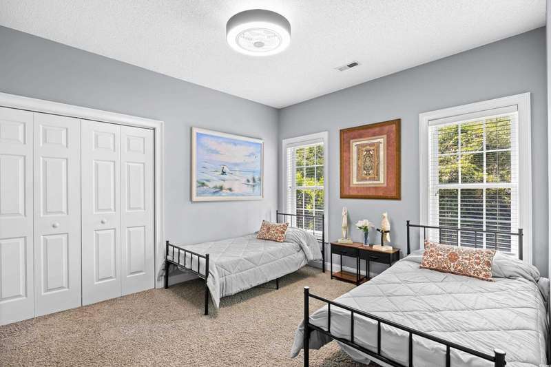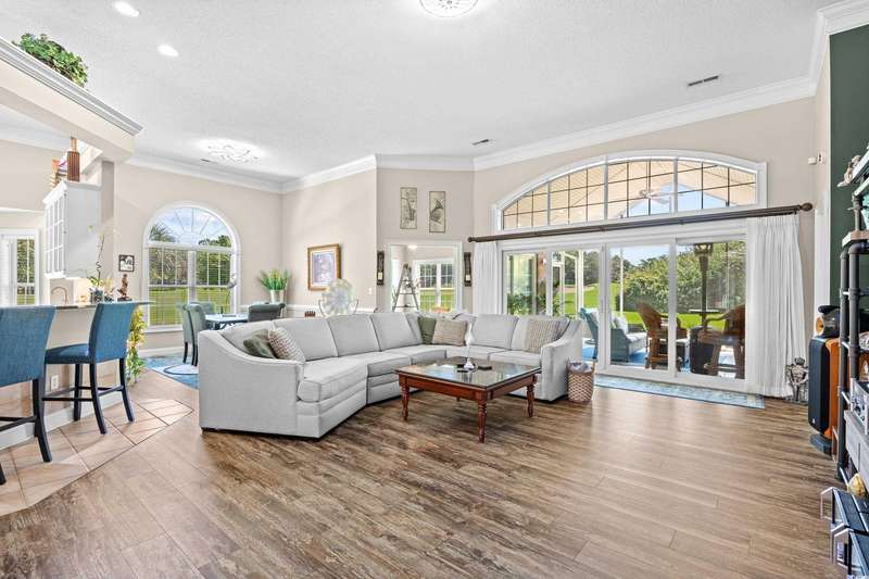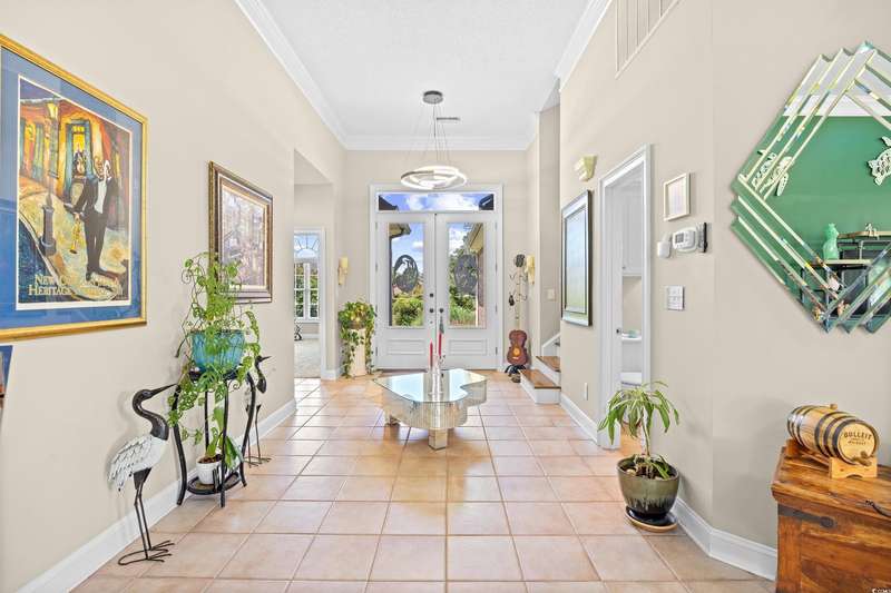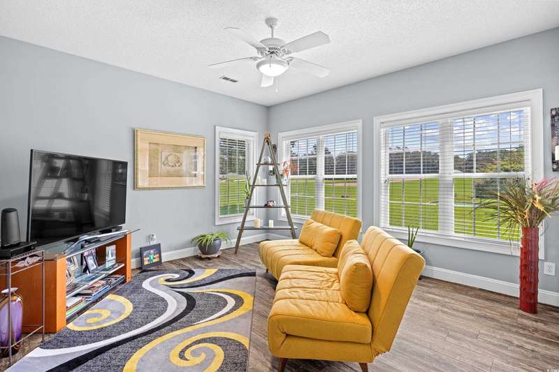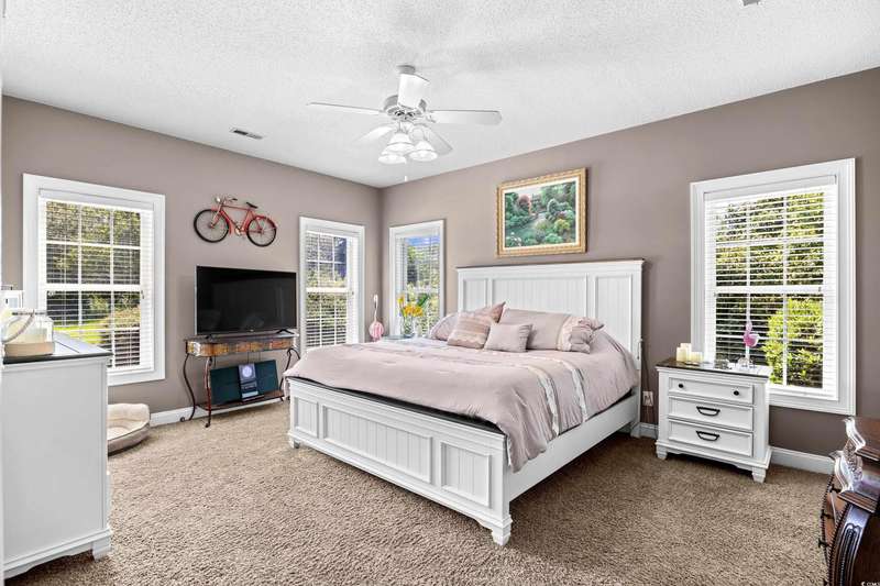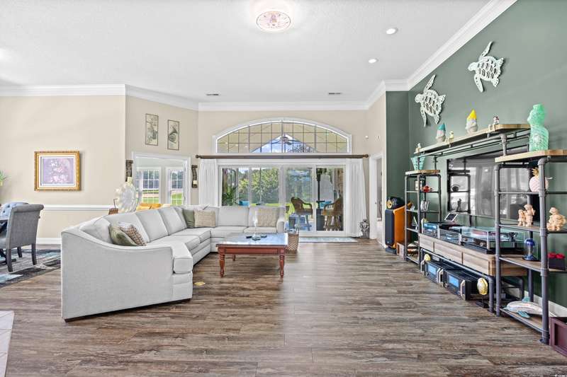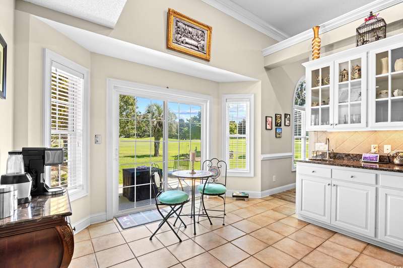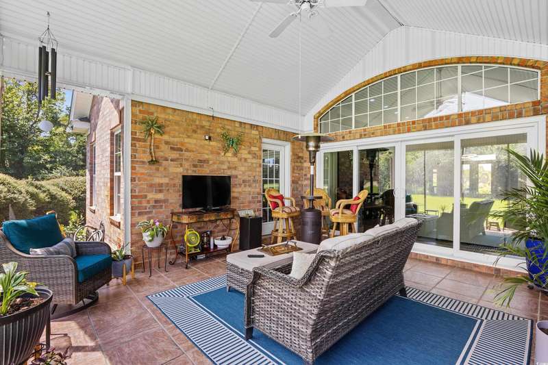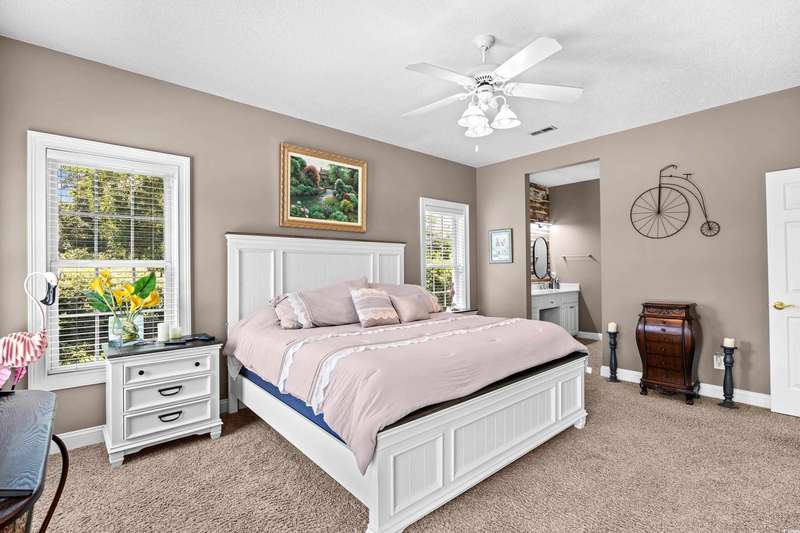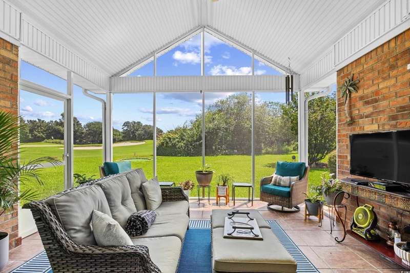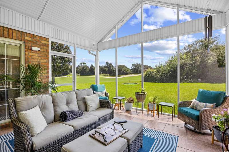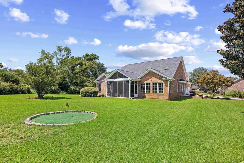 Nestled on a .45 acre cul-de-sac lot w/golf course views, this 2909 htd. sq. ft. brick home blends functional design w/high-quality upgrades. The open-concept floor plan connects the living room, kitchen and dining area. A double-door Carolina room & a screened porch w/new screens, provide versatile spaces for relaxation & entertaining while overlooking a beautiful backyard. This 4 bedroom, 3.5 bath home includes a three-car side-load garage and features two private master suites. Throughout the home, luxury plank flooring adds warmth and durability. The kitchen has been refreshed with a soft color palette, stainless steel appliances, & a thoughtful layout, with the main level laundry conveniently positioned between the garage & kitchen. Meticulously renovated over 16 months by its owner, an architecture professional of 43 years, the property boasts a new roof, fresh interior paint, & upgraded electrical and plumbing systems. Additional upgrades include underground gutters, new landscaping an 80 gallon water heater, updated lighting, fixtures, upgraded irrigation pump & sprinkler system, & a 12-ft, four panel rear door opening to the screen lanai. Security & convenience are top priorities with exterior cameras & lighting, a whole home security alarm, a backup generator bypass switch, a garage workbench w/ sink, & off-street parking for up to 10 cars. The private yard features a 1200 gallon concrete & slate waterfall fish pond and the location on the 13th green of the Willbrook Plantation Golf course. House can be sold furnished. Included with this home is access to Litchfield-by-the-Sea private beach available for you.