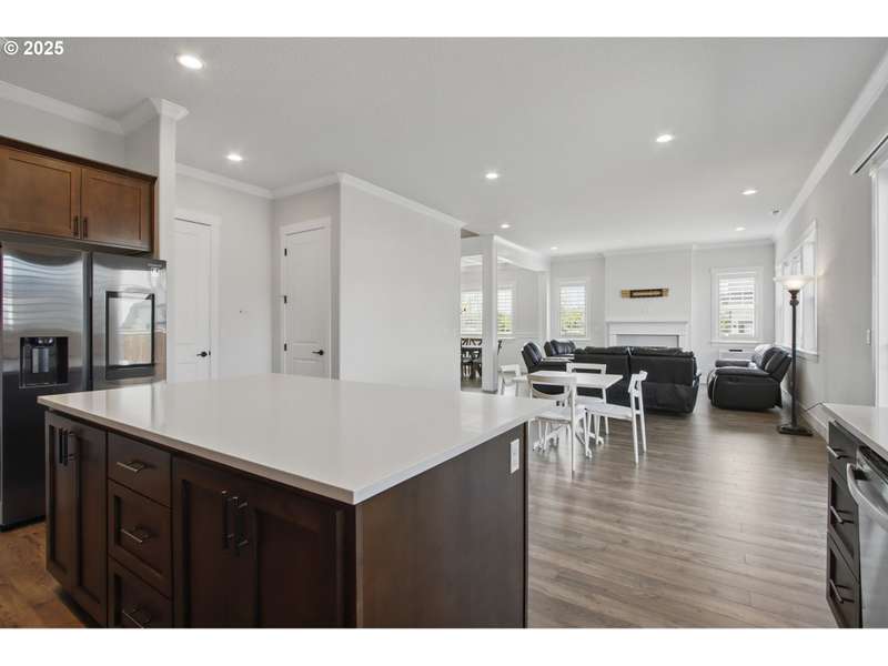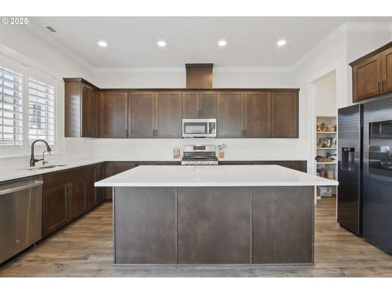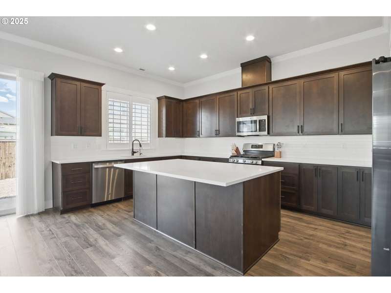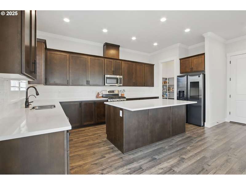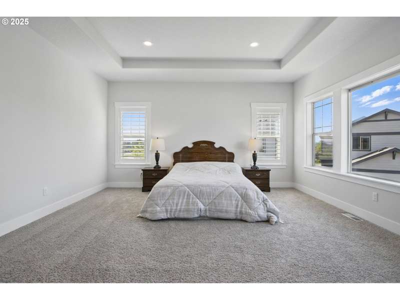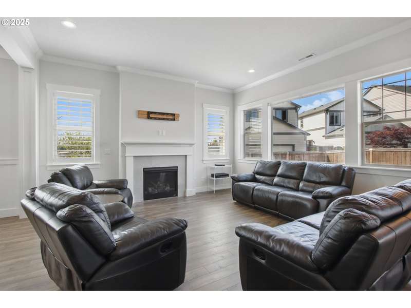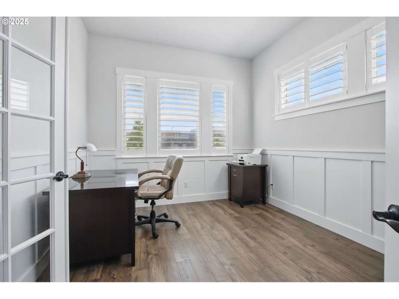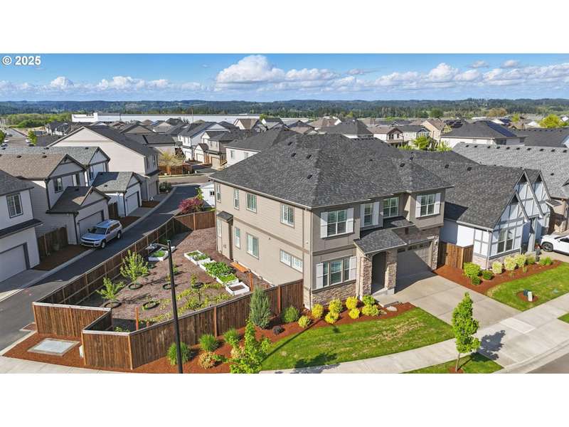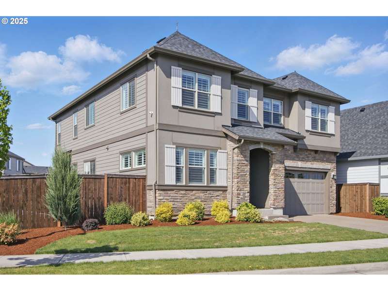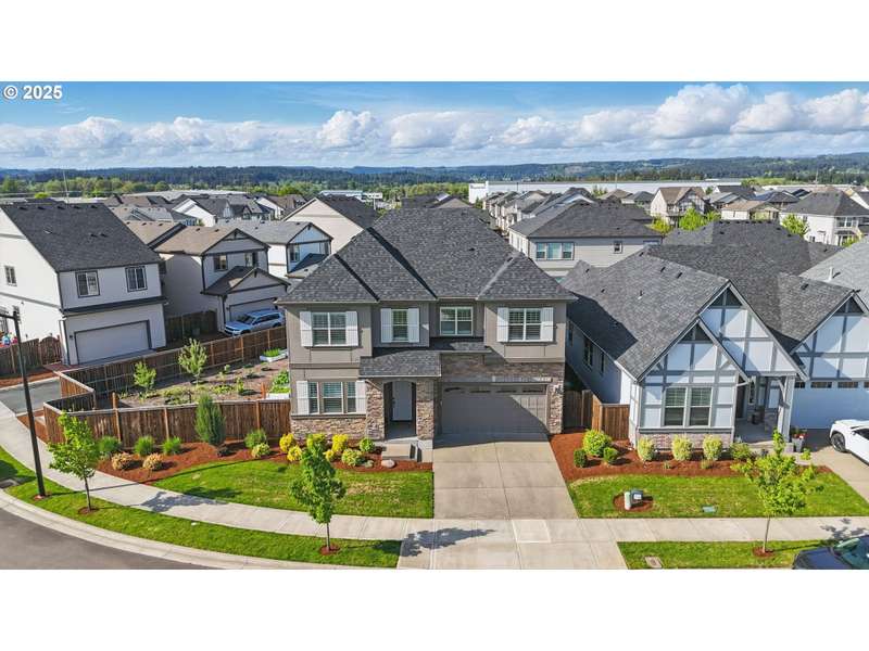 Welcome to this stunning nearly new 2020 built home in the sought-after Sunset Ridge II neighborhood surrounded by community parks&play structures.Sitting on the largest corner lot in the subdivision,this home offers enhanced privacy,abundant natural light,&no neighbors directly on one side.Inside is 4 bedrooms, a loft, a bonus room, and a main level office. The open-concept main level features high ceilings,LVT flooring,&neutral tones throughout.A dedicated office with French doors, wainscoting,& bright natural light makes for an ideal work space.The formal dining room showcases box beam ceilings & wrapped columns, the living room features crown molding&a gas fireplace.The kitchen is a chef’s dream with a large center island, breakfast bar, quartz countertops, subway tile backsplash, touchless faucet, stainless steel appliances, gas cooking, crown molding& a walk-in pantry. Adjacent is a nook with crown molding& a sliding door to the rear patio. Plantation shutters add a timeless touch throughout the home.Upstairs, a loft& large bonus room with French doors offer flexible living spaces. The private primary suite is tucked away at the rear of the home for privacy and features French doors, coved ceilings, dual walk-in closets, & an ensuite bath with dual sinks, quartz counters, a soaking tub, and a walk-in shower.A dual-sink hall bath with quartz counters,& a laundry room with utility sink,tile floors,linen closet & quartz counters, complete the upper level.The finished garage with high ceilings provides excellent storage, while the low-maintenance, fully fenced backyard is perfect for relaxing or entertaining ready for all your ideas. Enjoy territorial views from many upstairs windows.With easy access to shopping, dining, major highways,&top employers, this home offers the perfect blend of comfort,style,&convenience.Ask about a free 2 year lender paid interest rate buy down!