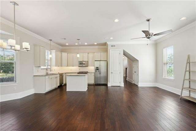 Contemporary double gallery on spacious lot in prime West End location - walking distance to Fleur De Lis Park, and Harrison Avenue's restaurants & retail. Nestled on a quiet, smooth street, this home offers a family-friendly layout upstairs, with a primary suite, two guest bedrooms, & laundry room. Downstairs offers another guest suite / office, and the opens to a sun-drenched family room gracefully flows through a screened-in porch out to a large backyard, packed w/ potential - ample space for a large pool while maintaining green space. Side-by-Side-by-Side parking! Video walkthrough on YouTube.