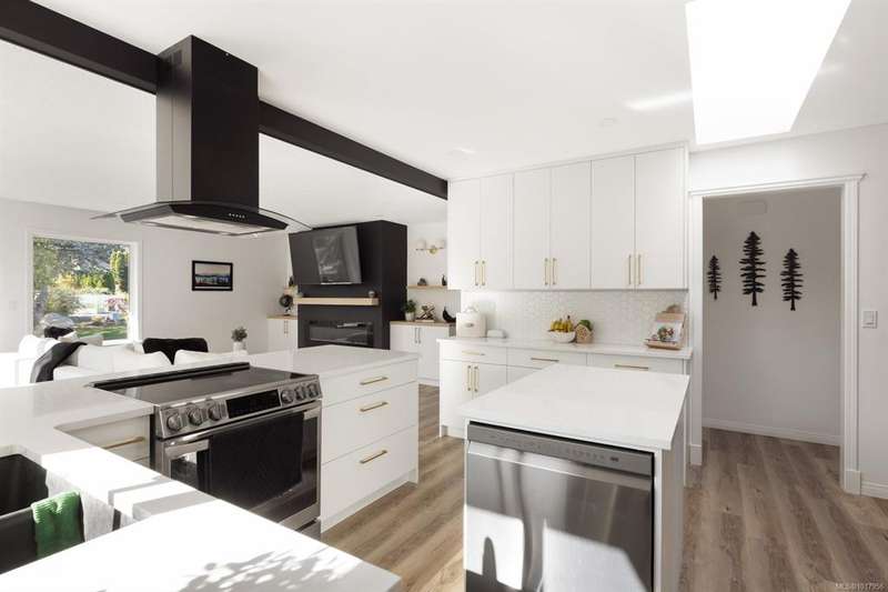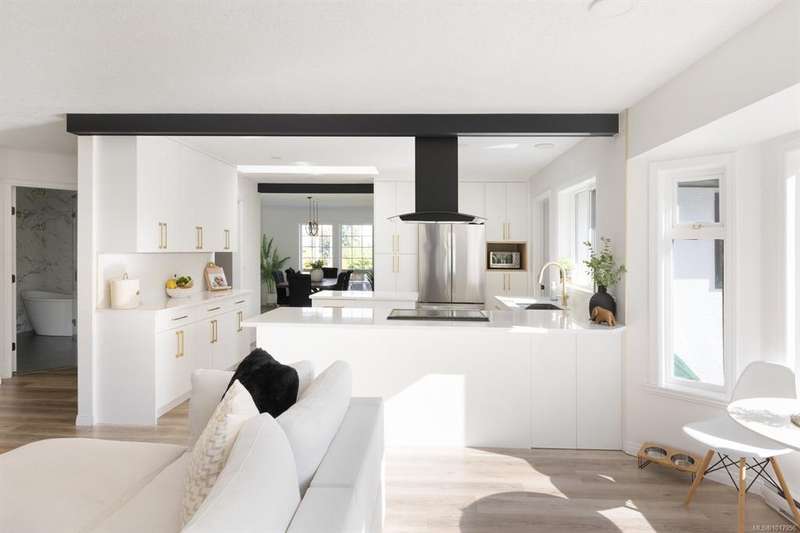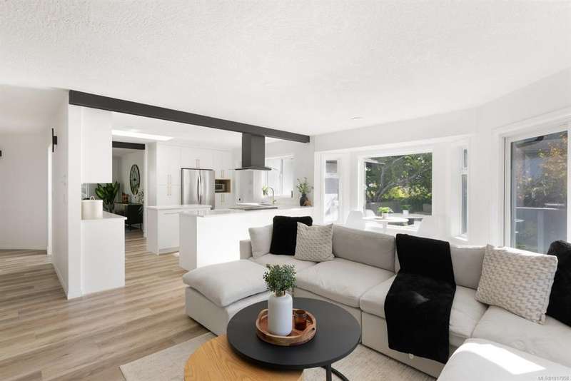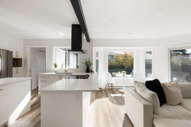 Completely renovated from top to bottom, this single-level, 3-bedroom, 2-bath home blends modern elegance with everyday comfort. The thoughtfully redesigned layout offers nearly 2,000 sq. ft. of bright, open-concept living filled with natural light. Spacious rooms, designer finishes, and a seamless flow between the kitchen, dining, and living areas create an inviting atmosphere. The stunning kitchen showcases sleek cabinetry, quartz countertops, and premium fixtures—perfect for entertaining. Beautifully landscaped grounds offer privacy and tranquility, with lush gardens, multiple patio spaces, and a two-car garage for added convenience. Ideally located just steps from the beach and minutes to the shops and restaurants of downtown Sidney, this home captures the perfect balance of coastal living and contemporary design.