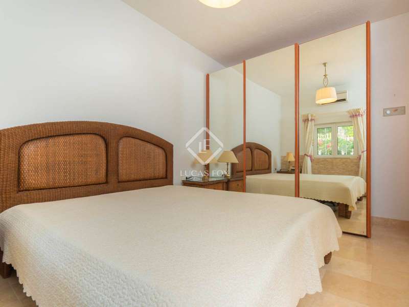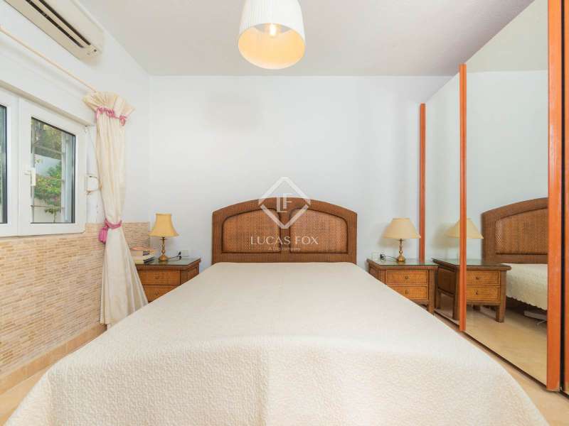 Located in the sought-after Cala Vadella development, this elegant single-level villa combines Mediterranean charm with modern comfort. Set on a generous plot with an extensive garden, it offers plenty of space to relax and enjoy Ibiza’s outdoor lifestyle. The property features three bedrooms and three bathrooms, including a main suite with en-suite bathroom. The bright and airy living room opens onto the garden, while the separate fully equipped kitchen ensures practicality and style. Outside, the L-shaped swimming pool is the focal point, complemented by a bar area and an equipped outdoor kitchen with chill-out lounge, perfect for entertaining or enjoying long, balmy evenings with breathtaking sea views. A private car parking area completes this exceptional property. This villa is ideal for those seeking a compact yet refined Mediterranean retreat with a welcoming atmosphere and open views.