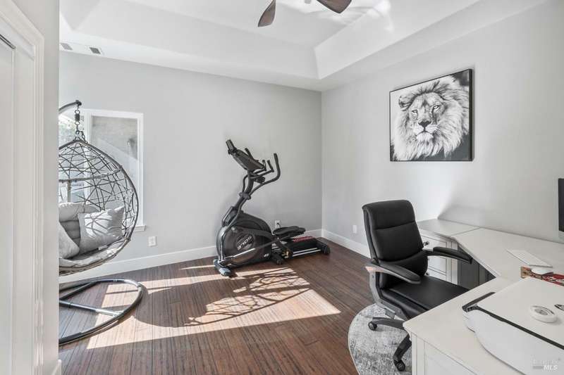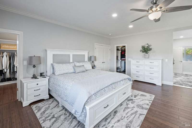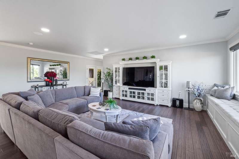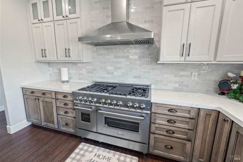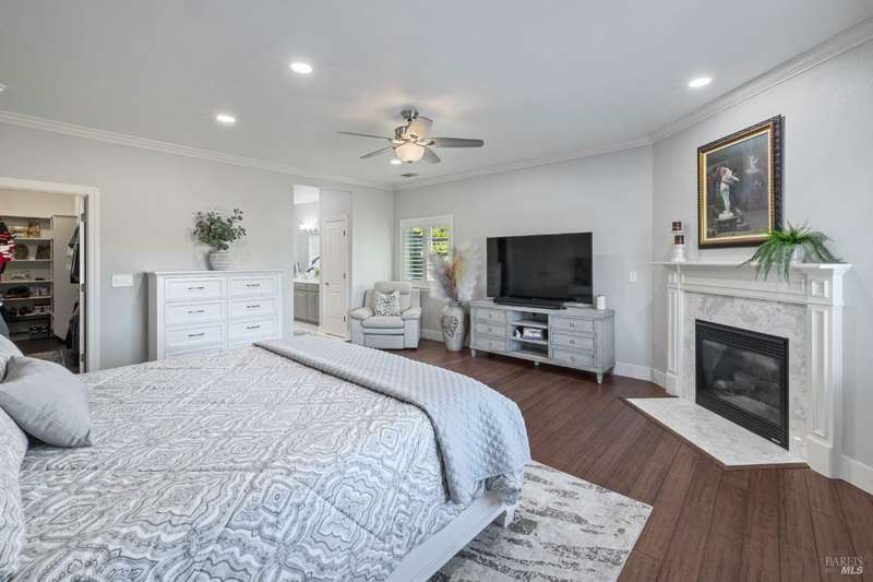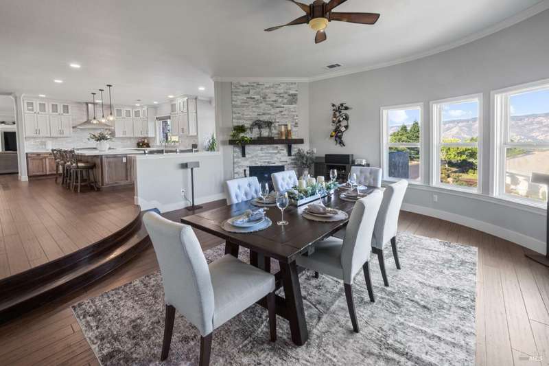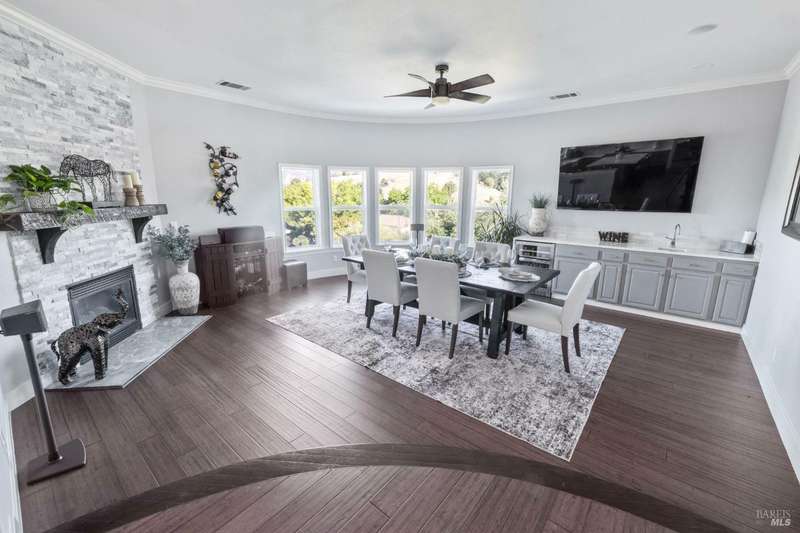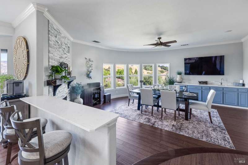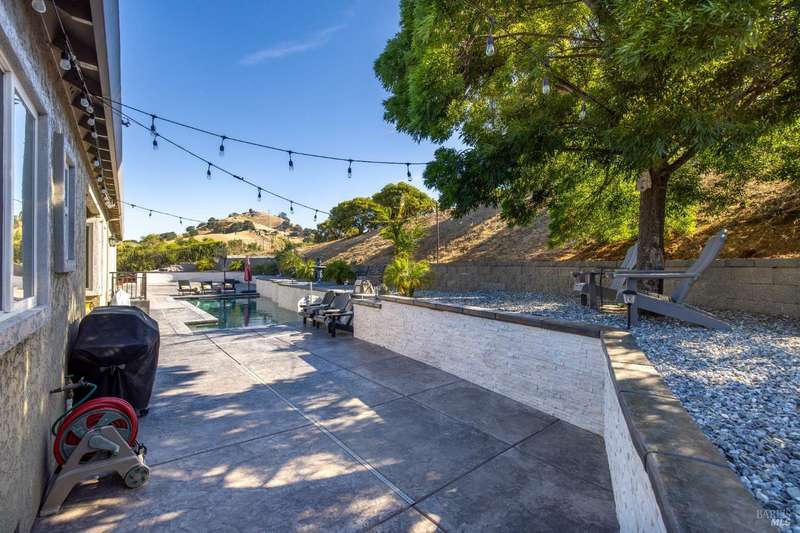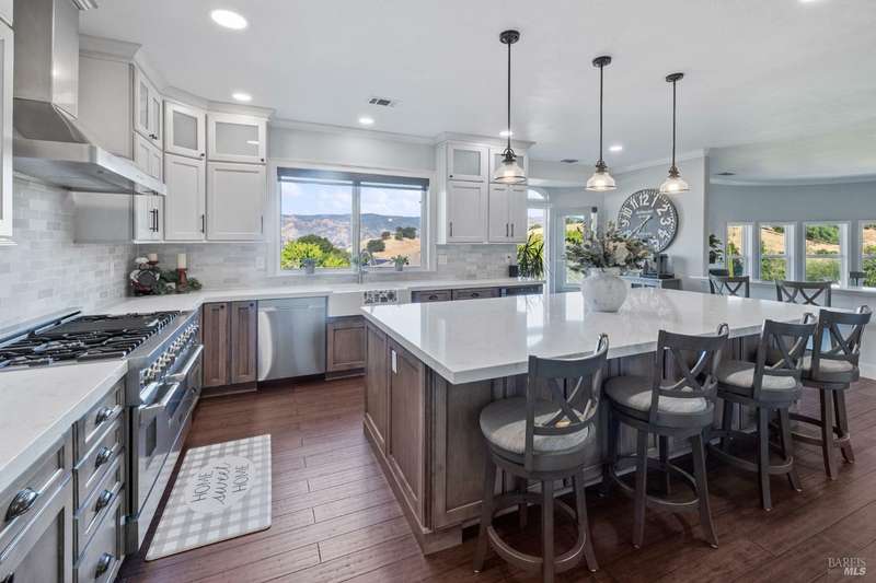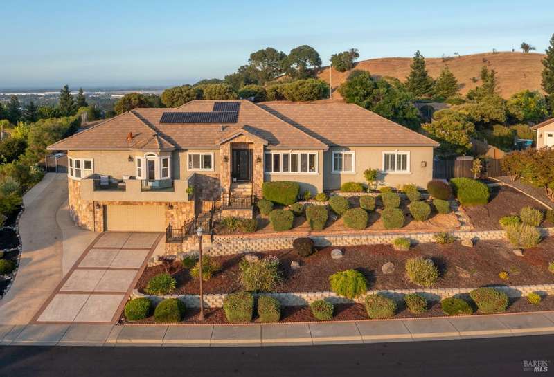 Welcome to North Vine Estates, a coveted gated community known for natural beauty, spacious lots, panoramic views, and a convenient proximity to downtown and great schools. This stunning single-level home offers 3,324 sq ft of beautifully updated living space with garage below. The exquisitely remodeled kitchen features shaker cabinets, a six-burner gas range with hood, quartz countertops, subway tile backsplash, and a large island with pendulum lighting. A picture window frames breathtaking hilltop views, while French doors lead to a patioperfect for enjoying sunsets. Entertain effortlessly in the open-concept kitchen/dining roon with curved window wall, fireplace, and wet bar. The great room includes a fireplace and cozy window seat. Engineered wood flooring flows throughout. A covered patio off the great room is perfect for hot summer days when enjoying the swimming pool with its waterfalls and custom lighting, The luxurious primary suite boasts a fireplace, two large closets, and spa-like bath. Additional highlights include a guest suite with bathroom, two additional bedrooms, solar panels, a dumbwaiter from the garage, and room to grow on a -acre lot. An extended driveway offers additional parking and an entrance to the home at the main level.