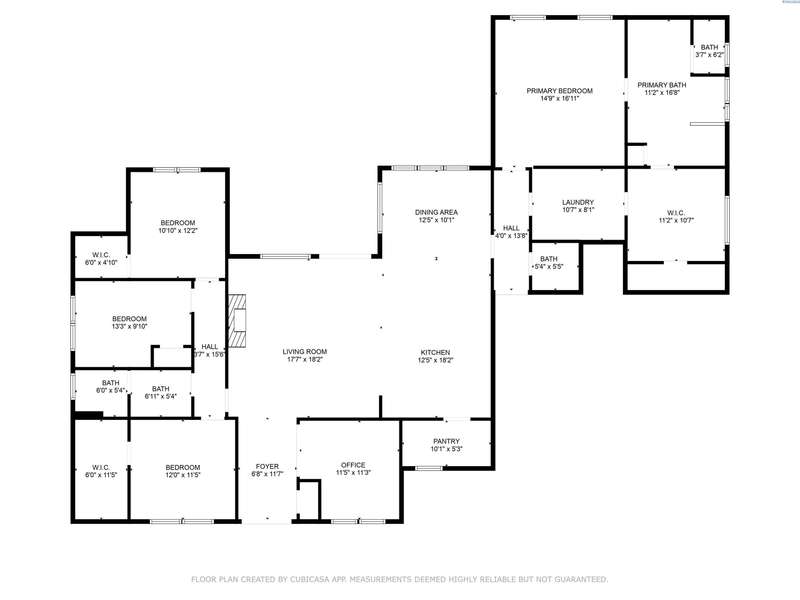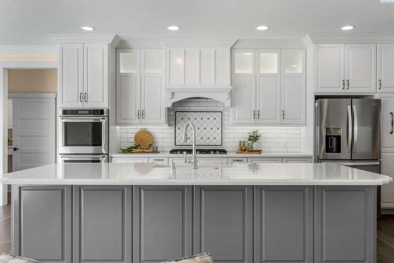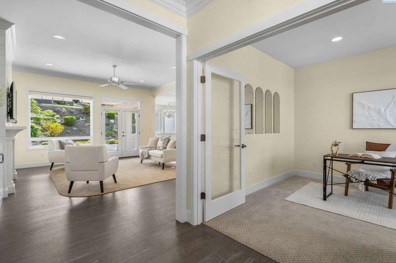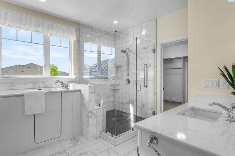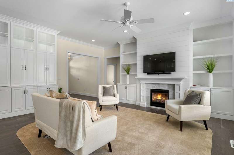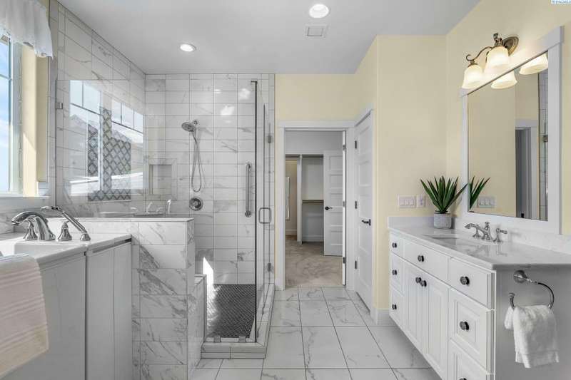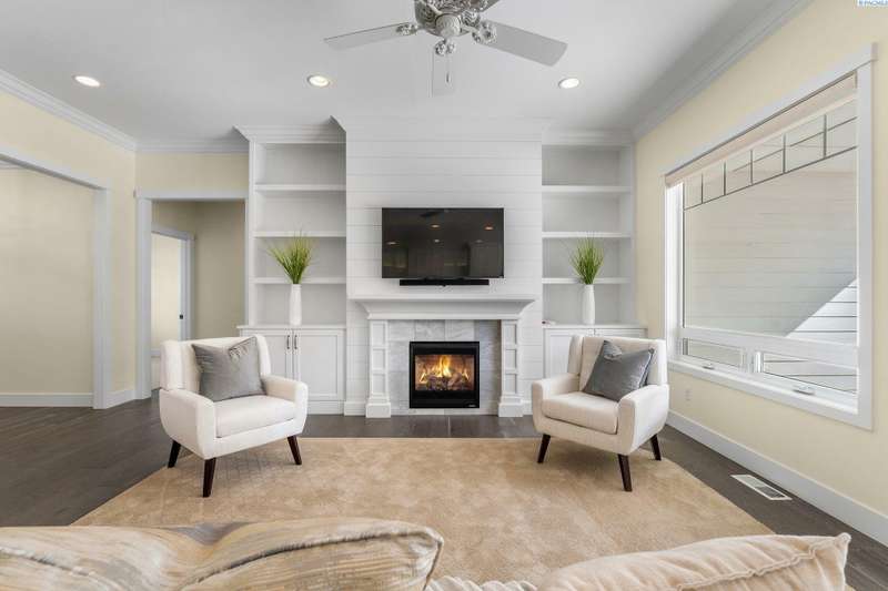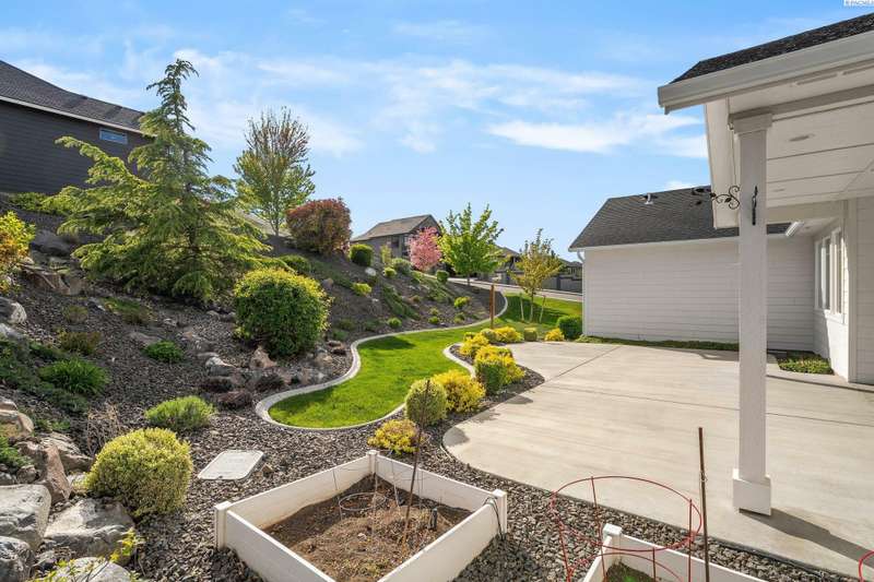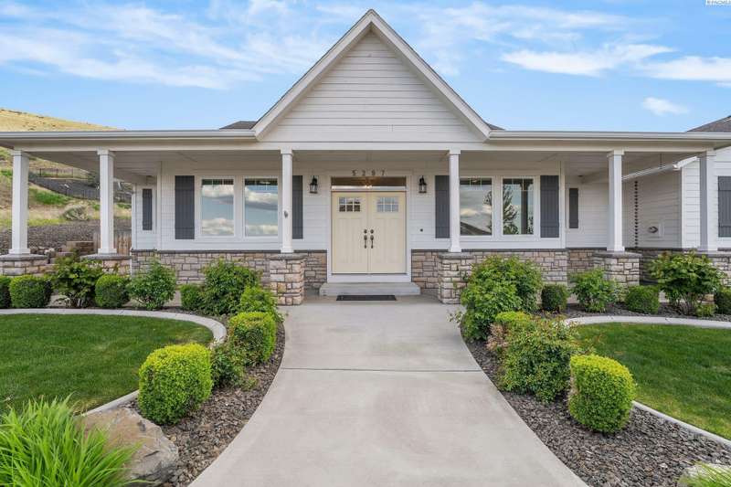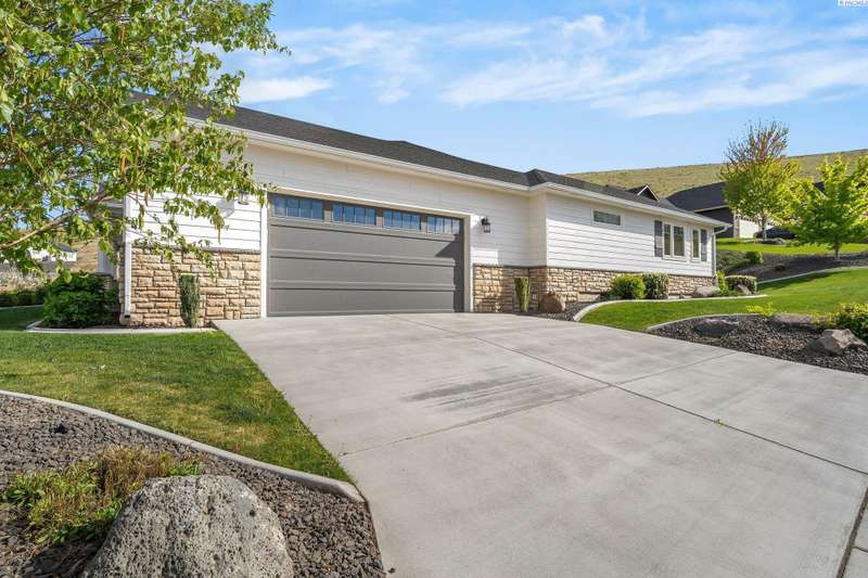 MLS# 283574 Gorgeous custom built Rambler in Inspiration Estates! Quartz countertops in kitchen, bathrooms, and laundry room. Space for everyone with 4 Bedrooms plus an office. Open kitchen with double oven, gas range with decorative hood, extensive custom cabinetry from California, extra storage, and large walk-in pantry with coffee / beverage bar. Triple pane, vinyl windows allowing lots of natural light with automatic blinds, 10’ ceilings, and extra wide 30” doorways. Oversized master suite with double sinks, separate water closet, newly installed walk-in tub & European style mud set tile shower, and walk-in closet with an additional storage closet inside that opens up into the laundry room. Gas fireplace in living room with marble surround. Fully finished 2 + car Garage with an additional 6 feet on each side with room for all your toys and a ramp for ease of access. Covered patio with ceiling fan and outdoor BBQ stub that overlooks the professionally landscaped backyard with dry bed creek, garden area and raised beds (must see in the spring and summer). Home includes all the upgrades like, Smart HVAC system and tankless hot water heater. MOVE IN READY.