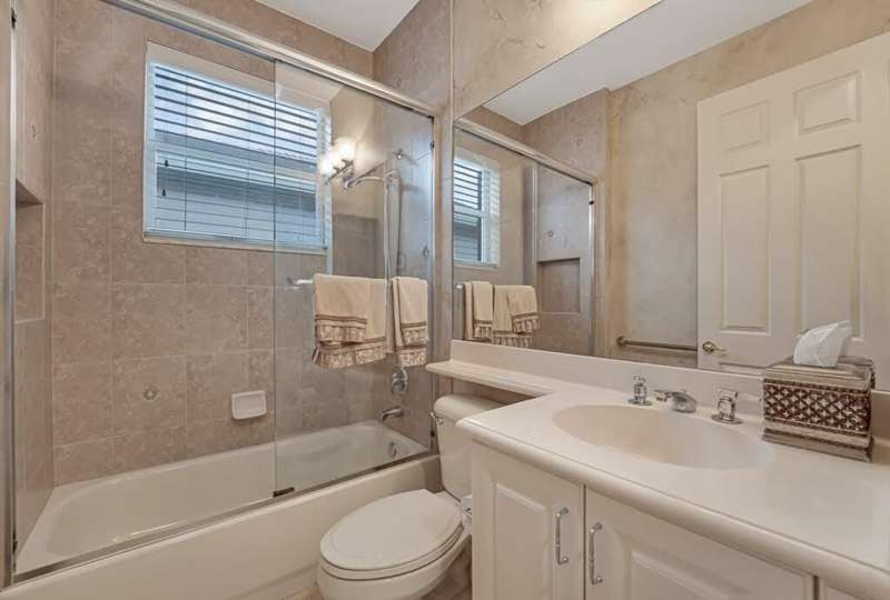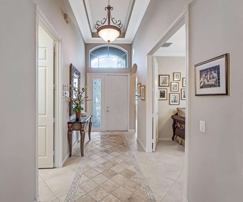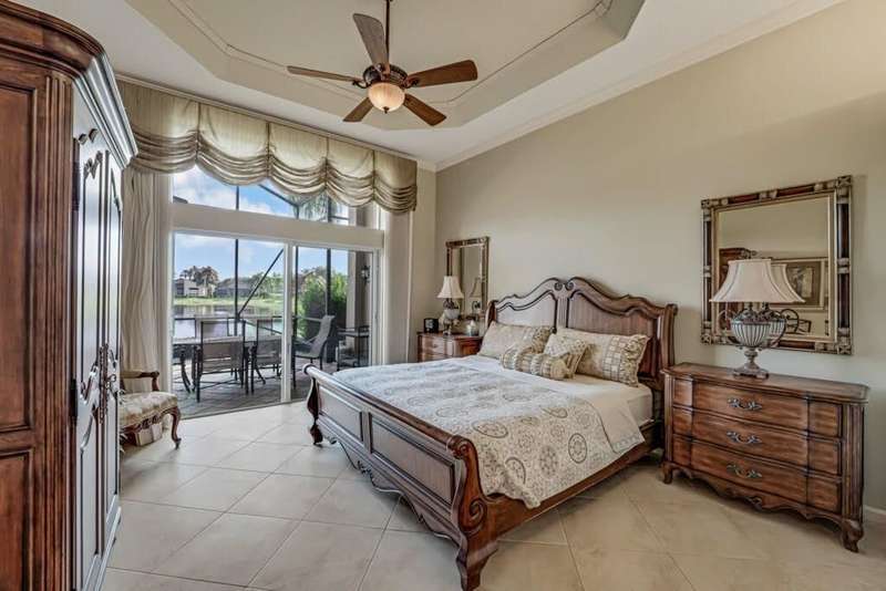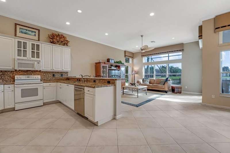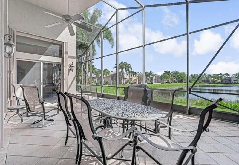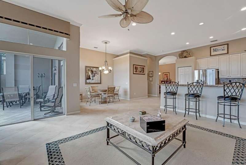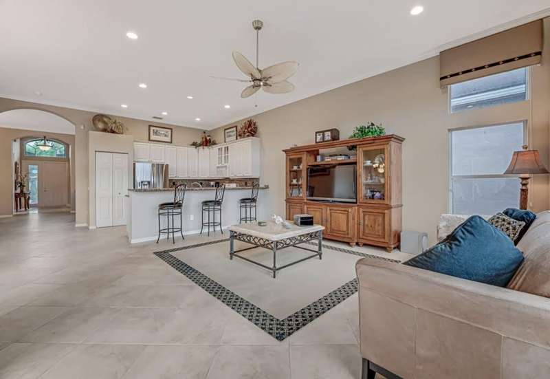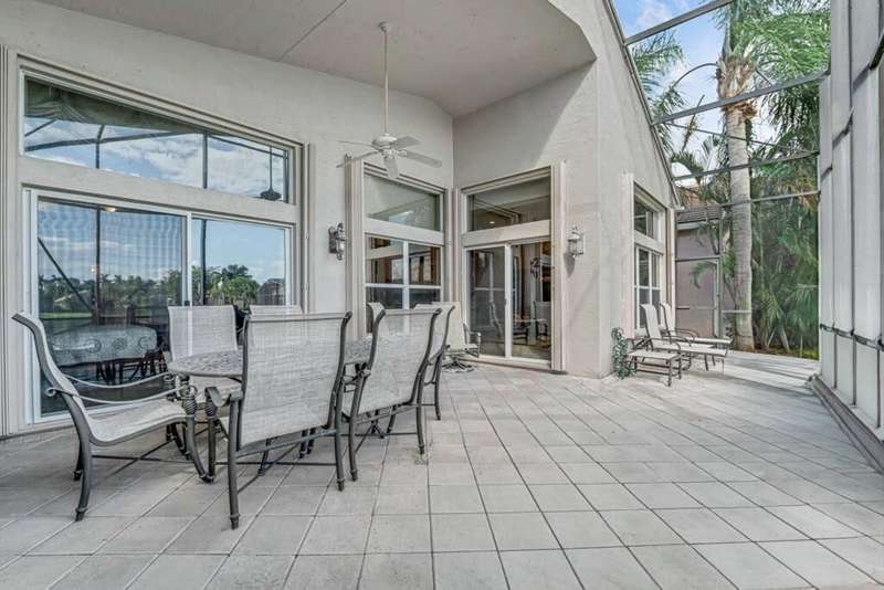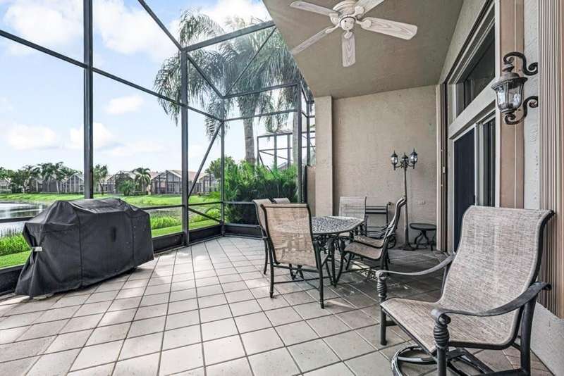 WATER VIEWS ARE OUTSTANDING! BEST PRICE EVER!! This spacious light, bright 3 bedr, 2.5 bth home is located on one the most private peaceful,serene lots in community. Long lake southern views & oversized extended screened lanai offers tranquility like none other! Sliders from the family room &owners suite + high transom windows make this home light throughout the day!No carpet! Neutral color tile flooring on a diagonal throughout, in pristine condition! Newer A/C & H/W heater, spa tub, add to the high quality upgrades this home offers! Fabulous oppty to own a highly desirable home,with accordian shutters throughout for best storm protection! HOA fee includes outside painting of the home, cable TV, hi speed wi-fi, security system, lawn maintenance, landscaping, amenities galore! LOVE IT!
