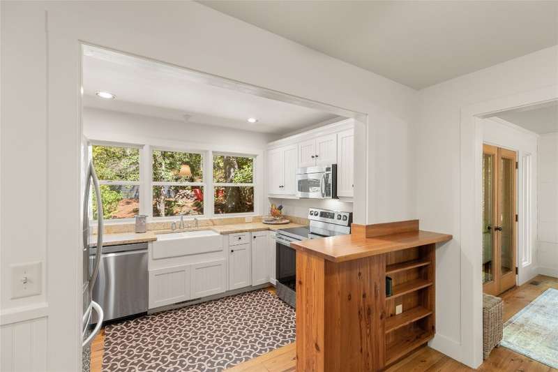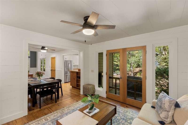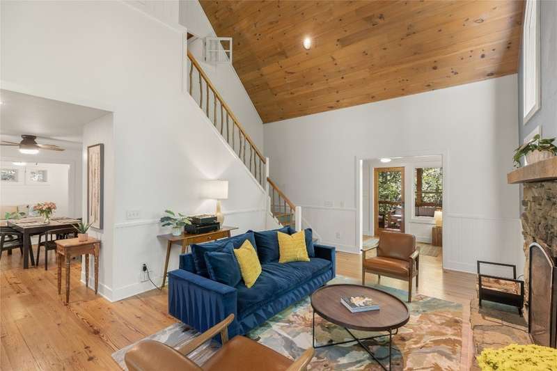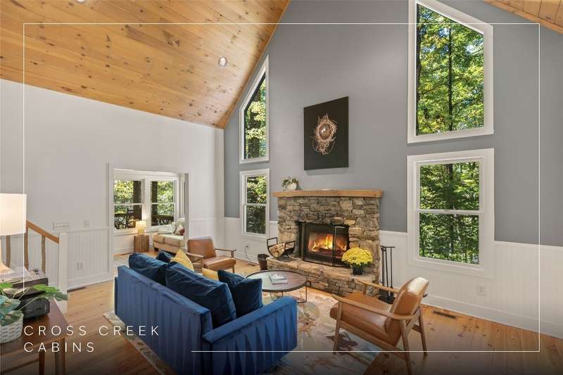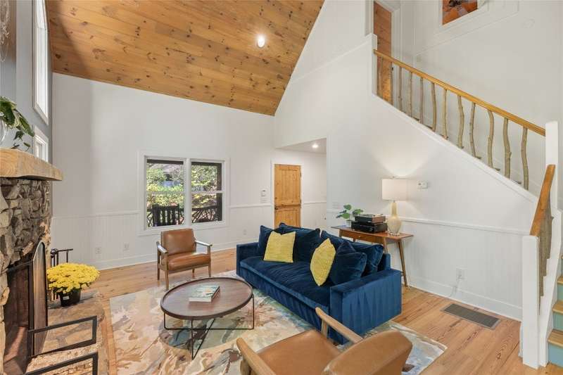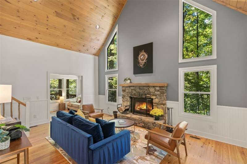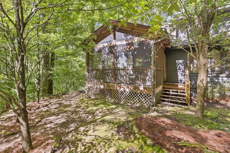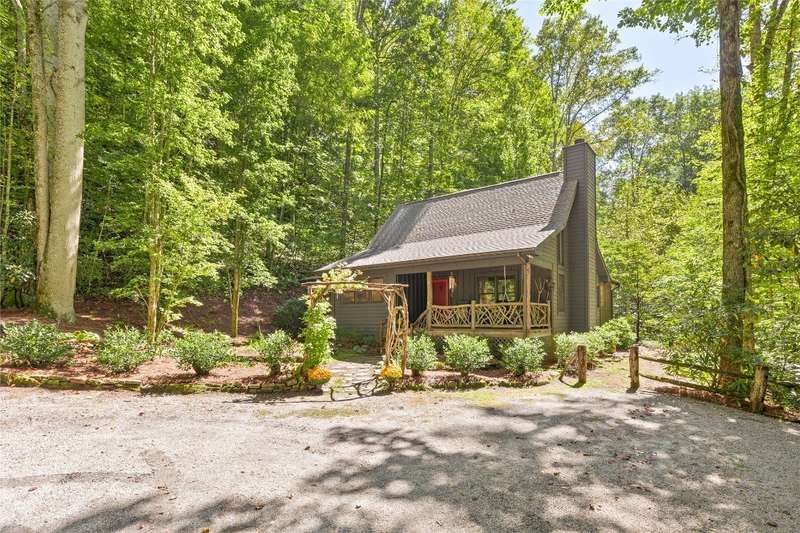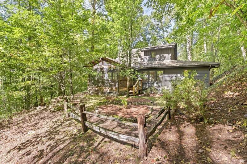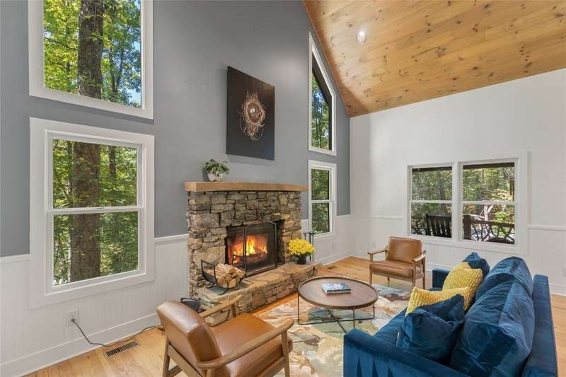 Welcome to Bluebird Cottage, an enchanting two-bedroom, two-bathroom designer's retreat. Discover timeless charm and the serenity of the mountains, ideally located just minutes from Lake Glenville and the vibrant village of Cashiers. Thoughtfully updated in 2024-2025, this move-in-ready, partially furnished haven features freshly painted interiors and exterior, new hardwood floors in the main-level bedrooms, two completely renovated bathrooms with spa-inspired finishes, a new stainless steel refrigerator, range, and dishwasher, Starlink internet, a radon removal system, new ceiling fans, and a chimney professionally serviced and maintained for optimal performance. Freshly updated landscaping enhances the lush, mature gardens and creates an idyllic backdrop for outdoor living. Step through a quaint trellis courtyard to the rustic front porch, then inside through a charming Dutch door into a light-filled interior with soaring cathedral ceilings, a striking stone fireplace, and abundant windows that showcase the natural beauty outside. The kitchen offers a farmhouse sink and stylish cabinetry, while the main-level primary suite, dining space, den, sitting, and bonus room ensure convenience, with the second bedroom and bath upstairs for added privacy. A screened porch, Adirondack-ringed firepit, terraced gardens, and a partially fenced yard offer endless opportunities for outdoor enjoyment. Just 15 minutes to the Cashiers Crossroads, and convenient to the town of Highlands, the Tuckasegee River, Franklin, Sylva, and beyond, Bluebird Cottage is meticulously maintained, beautifully furnished, and ready for immediate enjoyment. Embrace the magic of the season - whether it's the brilliant fall leaf colors or the festive spirit of Cashiers during the holidays. A truly rare offering, this serene and thoughtfully curated cottage invites you to slow down, savor the moment, and experience the simple joys of mountain living.