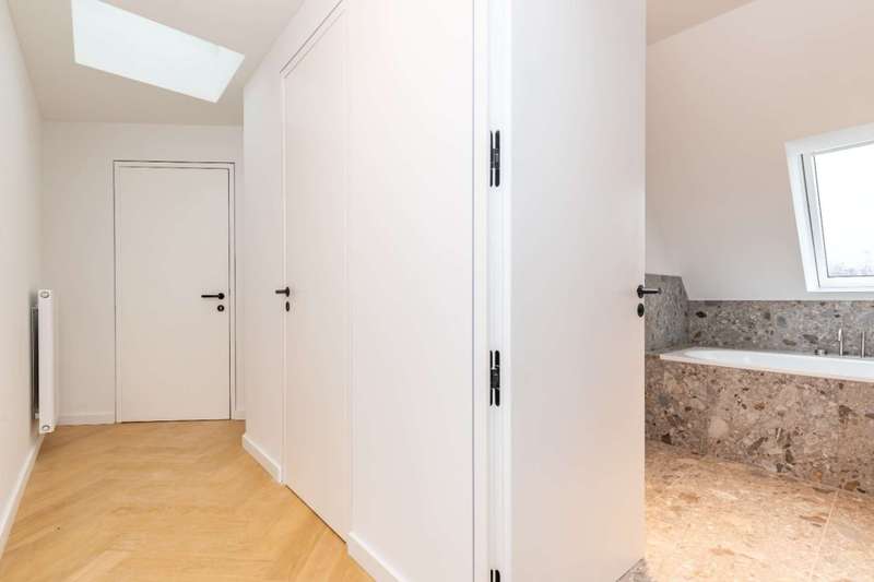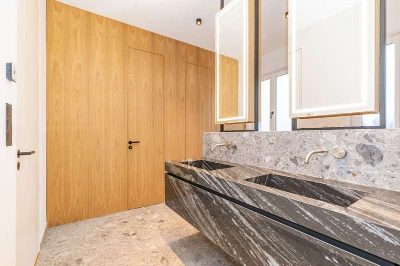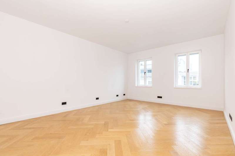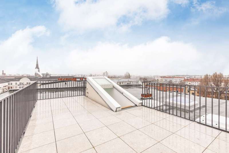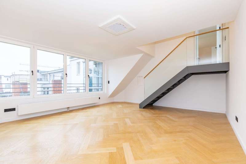 This exclusive penthouse is located on the 5th floor of a modern 5-storey building in a prime location in Berlin-Mitte. The generous living space of 260 m² in total is spread over 5 rooms, including 3 bedrooms and 3 bathrooms. The last modernization took place in 2022, which means that the penthouse is in top refurbished condition. The furnishings are upscale and leave nothing to be desired. The flooring consists of high-quality tiles and parquet. An elevator is available so that the penthouse is easy to reach. A cellar and a storage room offer additional storage space. The penthouse has a modern fitted kitchen with a beautiful south-facing terrace and an additional 25 sqm roof terrace with views over Berlin. Air conditioning is also available. A cellar also belongs to the property. A parking space can be rented as an option.