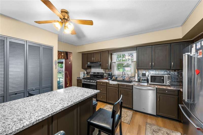 Well-maintained split-level featuring vaulted ceilings and gleaming hardwood floors in the living and dining rooms. The kitchen offers a large island and pantry, ideal for meals and entertaining. Lower level includes a cozy family room with wood-burning fireplace, full bath, and bonus room. Upstairs you'll find 3 spacious bedrooms and a beautifully remodeled bath. Updates include both baths (2024), furnace/AC (2022), roof & siding (2021), oven (2024), fridge (2020), washer (2019), dishwasher (2018), and dryer (2017). Home is being sold as-is.