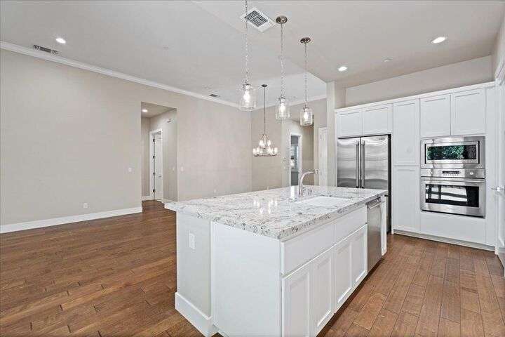 Where Luxury and Serenity meet...This beautifully upgraded single-level home in the highly sought-after Palisades Sierra Oaks gated community. Step inside and discover it's solid bamboo floors, solid slab countertops, and a chef's kitchen with premium stainless-steel appliances, extensive cabinetry, and abundant counter space, perfect for both everyday living and entertaining. A sleek dry bar with built-in wine refrigerator adds a touch of sophistication and convenience, while custom floor-to-ceiling shelving in every walk-in closet offers exceptional organization and design. The open-concept layout flows seamlessly from kitchen to living and dining areas, creating a bright, welcoming atmosphere filled with natural light. Outdoors, enjoy a tranquil rock garden with a cascading waterfall, ideal for relaxing mornings or peaceful evenings. This home blends refined modern style with low-maintenance living inside a secure, well-maintained gated community, just minutes from Loehmann's Plaza, Sac State, the American River Parkway & its world class bike trails. Experience the perfect combination of elegance, comfort, and convenience, a true hidden gem in the heart of Sierra Oaks.