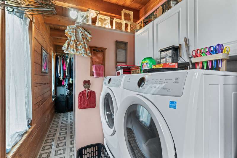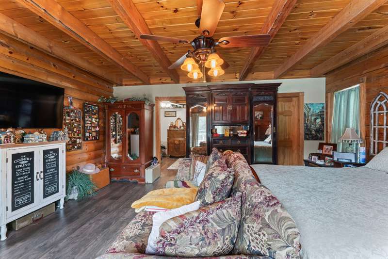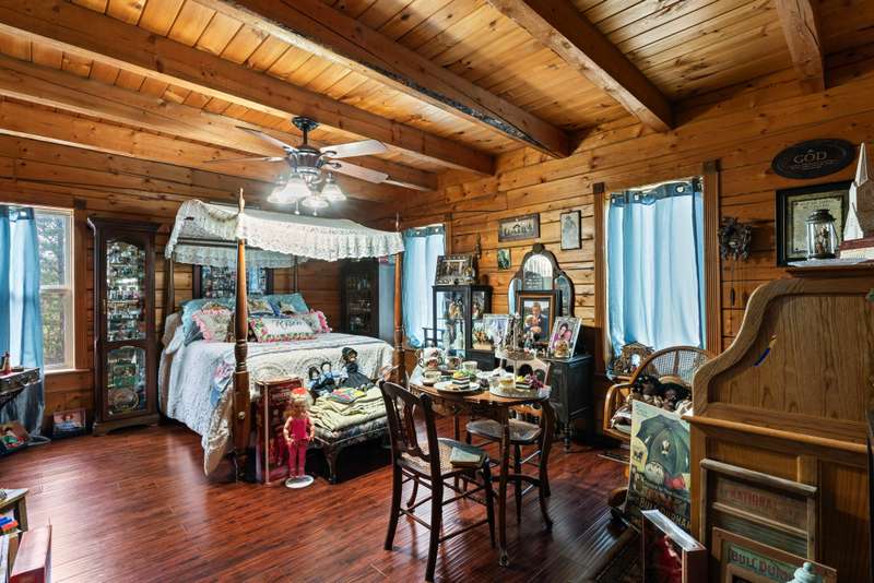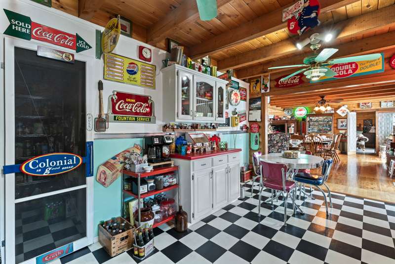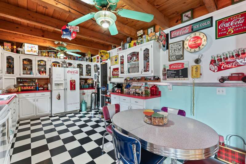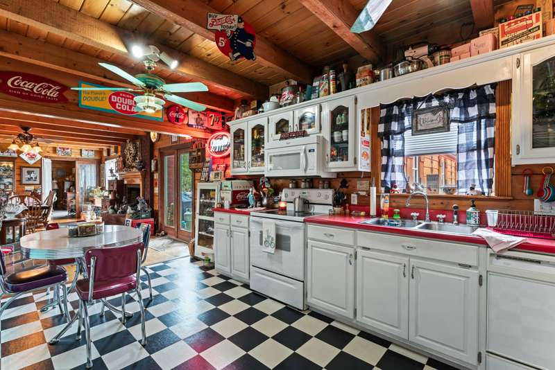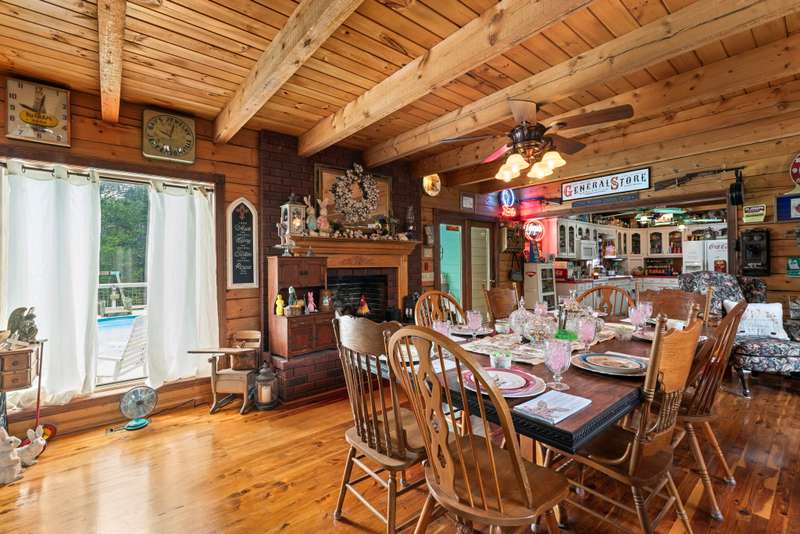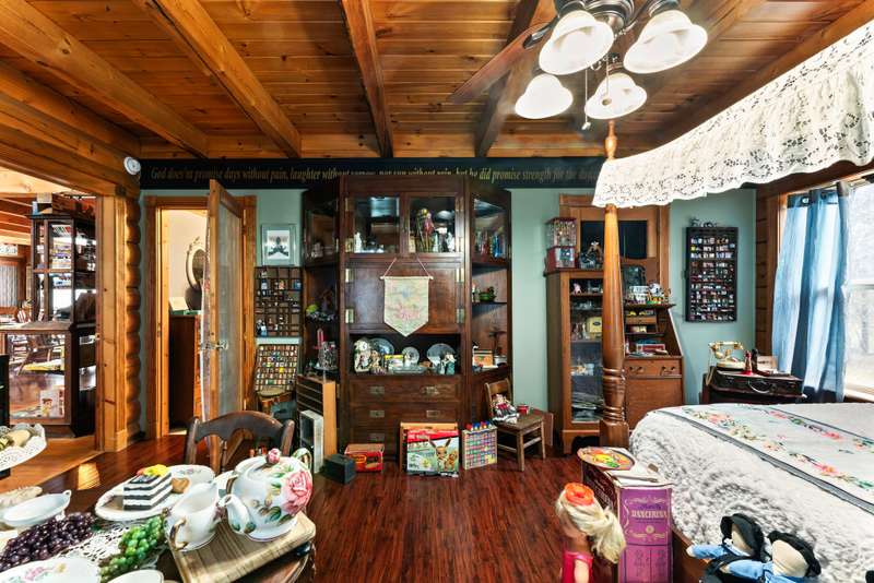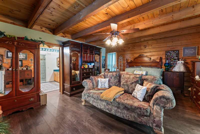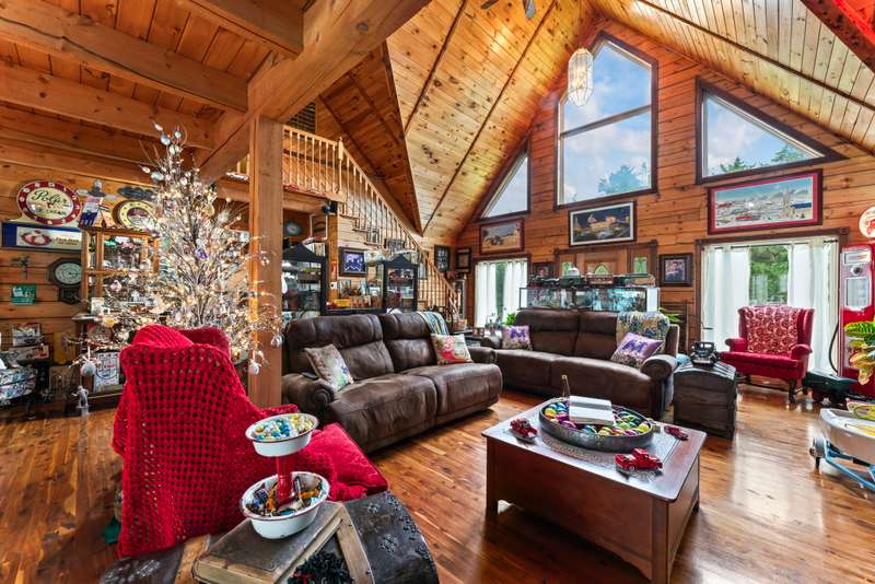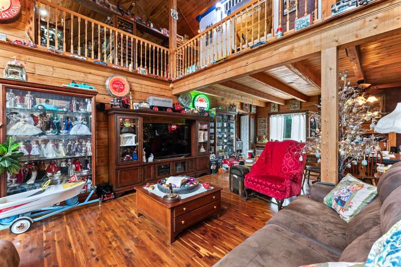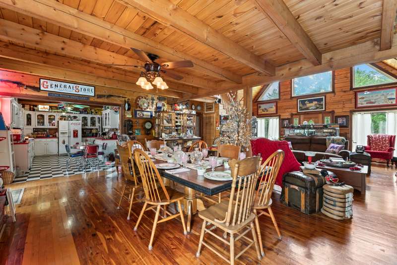 This one-of-a-kind 3 bed, 3 bath log cabin--crafted from lodgepole pine with stunning cedar floors--offers 3,000 sq ft of rustic charm and unique style. Set on a beautiful lot with a spacious outdoor area and a massive 6-car detached garage, this home is a dream for collectors and car enthusiasts. The sellers, passionate collectors of car memorabilia, antiques, and vintage treasures, have lovingly filled the space with character and history. Every corner reflects warmth, care, and craftsmanship. Come see a home where rustic elegance meets a lifetime of stories. *This property can be sold with commercial property - MLS#2817344