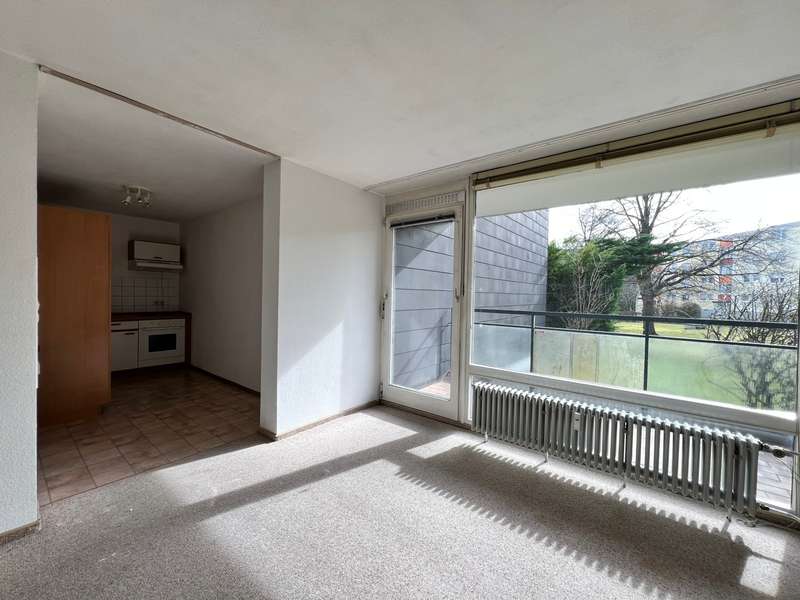 Cozy apartment with balcony in a quiet location - Mittelrain This well-kept apartment on the first floor with a total area of approx. 40 m² is for sale. The property is situated in a quiet location on Mittelrain and is characterized by its compact and practical room layout. The apartment consists of a spacious room that can be used as a living and sleeping area, as well as an open kitchen area. The bathroom is in typical 70s style and has a bathtub. The balcony is particularly attractive and invites you to relax and sunbathe. It offers enough space for a small table and chairs and allows you to enjoy the fresh air and the view. The property was built in 1966 and is in a well-kept condition. Heating is provided by district heating, which contributes to an efficient and environmentally friendly heat supply. The apartment is ideal for singles or couples looking for a compact and cozy place to live. The quiet location guarantees a relaxing living atmosphere. There are also plenty of shopping facilities and public transport links in the surrounding area. Thanks to the large window in the living area, the apartment is beautifully bright and flooded with light. The apartment is located on the first floor, which makes it easy to access. Overall, the apartment is in good condition and has been freshly painted. Overall, this property is an attractive offer for individuals, couples or investors looking for a small and well-kept apartment. The quiet location, the practical room layout and the balcony make this apartment a cozy home. Interested parties are cordially invited to arrange a viewing and see the benefits of this property for themselves. We will be happy to answer any further questions you may have. Please note that viewing appointments can only be arranged after contacting us personally and upon presentation of a current financing confirmation. We look forward to receiving your inquiry via the contact form and will get in touch with you as soon as possible.