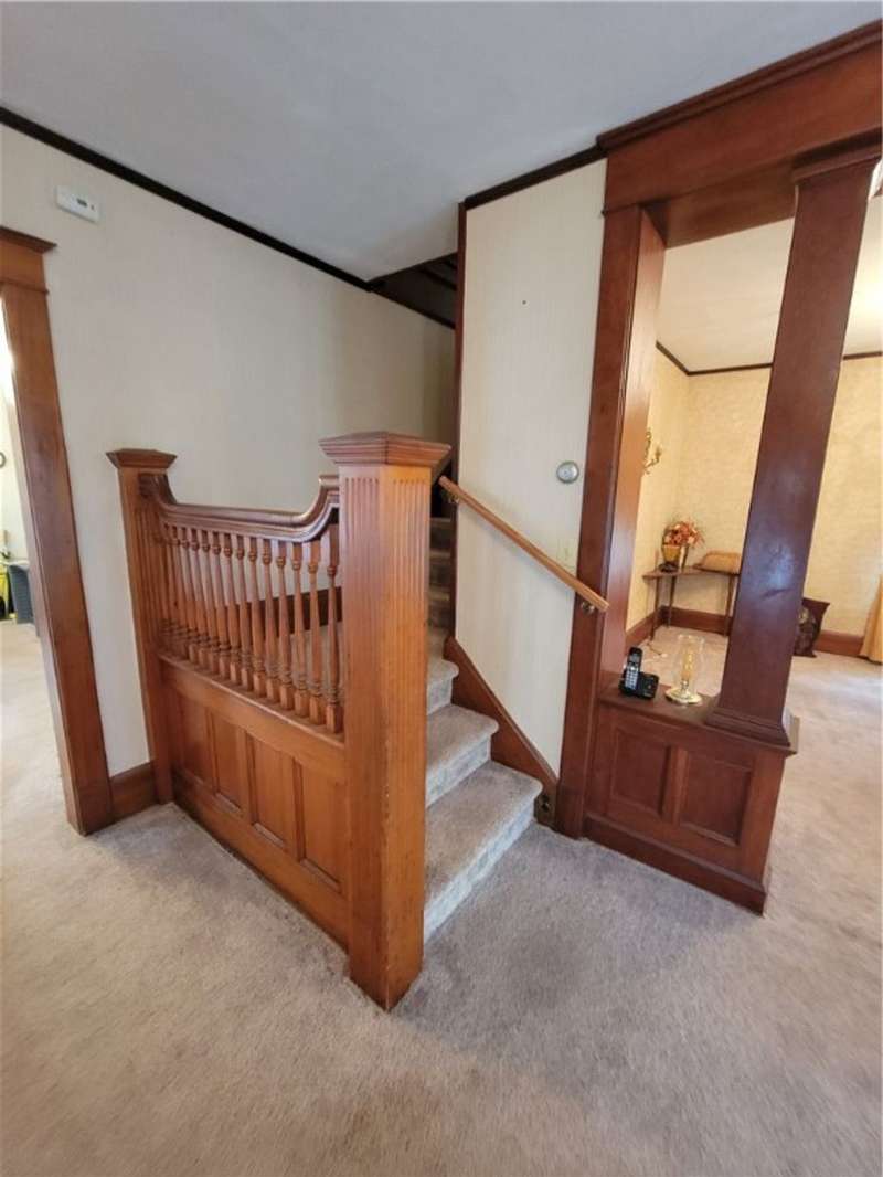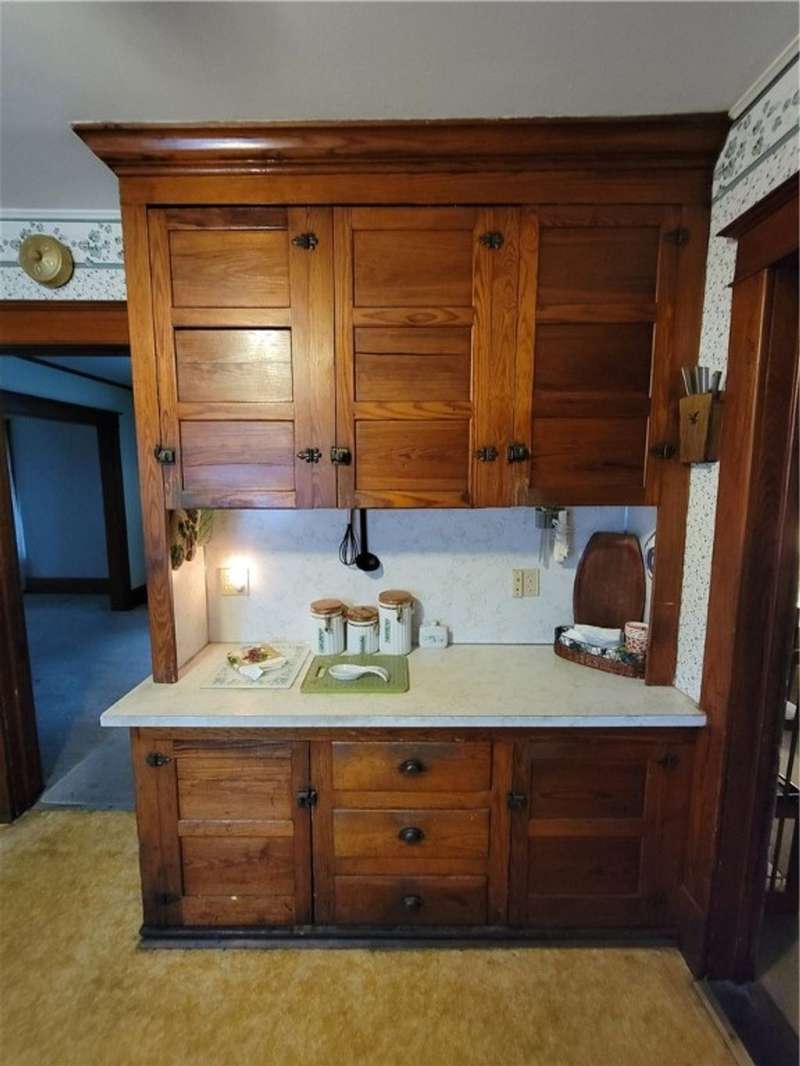 Lovely 1870 Craftsman style home located in Norwich NY. Showcasing many period details from the original wainscotting, the built in cupboards and the cherry wood trim throughout. The handcrafted woodwork is remnant of days gone by. The first floor of the home offers a living room, a den area and a separate dining room. There is a small room off the kitchen that was used primarily for a sitting area, a spot to relax. The kitchen has a gorgeous Hoosier style cupboard built in, sure to impress!!! The home has 4 bedrooms and 1.5 baths. The upstairs bath has a tub shower combo; a farm style cast iron sink and the original corner cabinet. Lots to love. Two car carriage barn providing parking and ample storage. Enjoy your semiprivate back yard or take a short stroll to the public park and pool just down the street. Close to Hospital, Shopping and Schools.