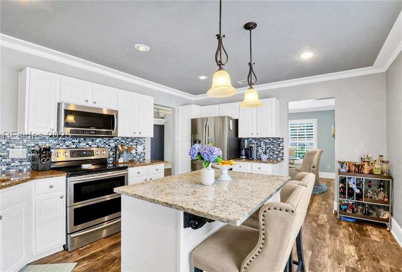 Updated 3-bedroom, 2.5-bathroom home in Pinecrest, featuring a long golf course view. In turn-key condition, this home boasts the popular Azalea floorplan with a spacious primary suite on the first floor and two additional bedrooms upstairs. Enjoy the outdoor living space with a screened porch, fenced-in yard, and a private patio with a hot tub. Walk to driving range and putting green from your back yard! Inside, you'll find beautiful hardwood floors throughout and charming shiplap accents. Easy access to the community's fantastic pool, pickleball courts, tennis courts, and fitness center!
