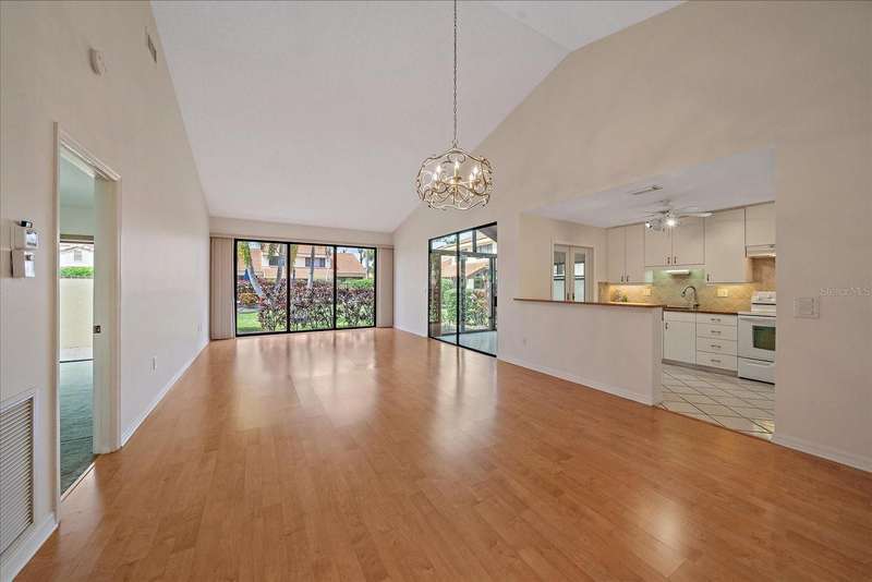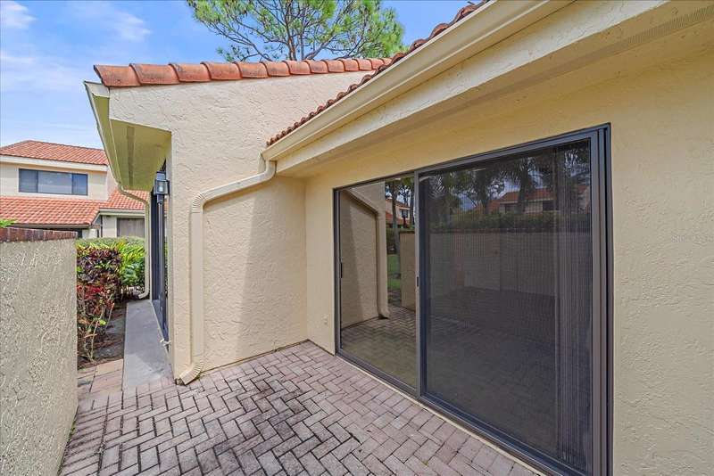 Welcome to the desirable community of Huntingwood in the Meadows! This charming 2-bedroom, 2-bathroom home offers 1,263 square feet of comfortable living space. The entrance boasts a large paver patio courtyard with plenty of space for outdoor dining or entertaining. As you enter the great room you are wowed by the soaring vaulted ceilings and freshly painted interior. The open floor plan and remodeled kitchen create a bright and inviting atmosphere. From the kitchen, you can enter through newer French doors to the enclosed lanai, yet another place to relax and take in the beautiful Florida landscaping or entertain guests. The large primary suite features a vaulted ceiling and sliders to a private courtyard, offering a serene spot for morning coffee. The ensuite bathroom boasts dual sinks, granite countertops and an updated tile walk-in shower. The home is conveniently located near the community pool, providing easy access to leisure and recreation. Additional features include covered parking with a 4x8 storage unit for all your extras. The Meadows community has so much to offer: a new Fitness and Wellness center, 14 miles of trails for walking or biking, 3 golf courses (2 public, one private) Har-Tru tennis courts, pickleball courts, and a Junior Olympic-size pool. This location can't be beat - you're just a short drive from downtown Sarasota, where you can enjoy vibrant restaurants, shopping and cultural activities. And you're even closer to the UTC area, full of shopping, dining and the new Mote SEA (aquarium). So whether you are a golfer, walker, swimmer, or just love the Sarasota lifestyle, don't miss the opportunity to make this beautiful home yours! Schedule a showing today!