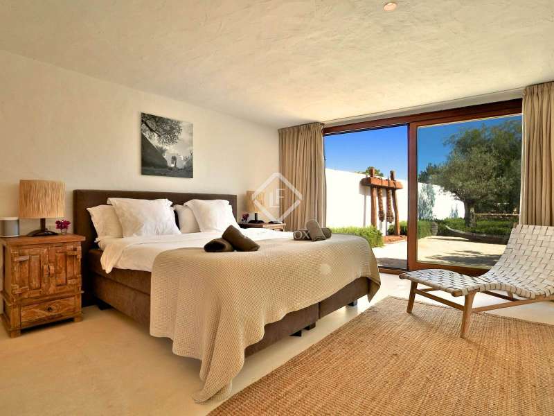 This 5-bedroom Blakstad-style finca with tourist licence, of 410 m², resting on a peaceful 3,200 m² plot, is located just moments from Santa Gertrudis—one of Ibiza’s most charming and sought-after year-round villages. Its central position offers quick access to Ibiza Town, Santa Eulalia, the airport, international schools and key leisure destinations, while still benefiting from complete countryside privacy. One of the property’s strongest long-term advantages is its 100% autonomous solar and water system, a rare and future-proof asset in Ibiza that reduces running costs and increases stability. Together with a legal tourist rental license (ETV), this autonomy reinforces the property’s strategic value as both a lifestyle home and an investment. Architecturally, the finca is rooted in the Blakstad philosophy, known for respecting traditional Ibicenco proportions, natural materials and harmony with the landscape. At the same time, subtle Phoenician influences—seen in the earthy palette, curved forms, handcrafted textures and the connection between indoor and outdoor spaces—bring an added sense of depth, heritage and timelessness. Inside, the home is designed with flow and warmth in mind. The main living area, centred around a traditional fireplace, opens directly to the terraces, blurring the boundary between interior and exterior. The open-plan kitchen is fully equipped and supported by ample storage and utility areas. The five double bedrooms ensure comfort and privacy for family and guests, with the master suite featuring a Bali-style open-air bathroom, complete with bathtub and outdoor shower. Underfloor heating, efficient climate systems and quality finishes ensure excellent year-round living conditions. The result is a home that feels both ancient in spirit and contemporary in comfort. Outdoors, the finca offers a true Mediterranean sanctuary. Mature gardens filled with olive, citrus and lime trees frame several terraces, shaded chill-out corners and a heated saltwater pool, with one of the most beatiful designs of Ibiza. A generous 107 m² covered terrace provides an exceptional setting for dining, gathering and enjoying the island’s climate all year round. In conclusion, this property brings together authentic Ibiza heritage, modern autonomy and long-term investment security. It is ideal for families seeking peace and space, buyers who value sustainability and independence, and investors looking for a high-performing, low-maintenance asset in one of the island’s most privileged locations.