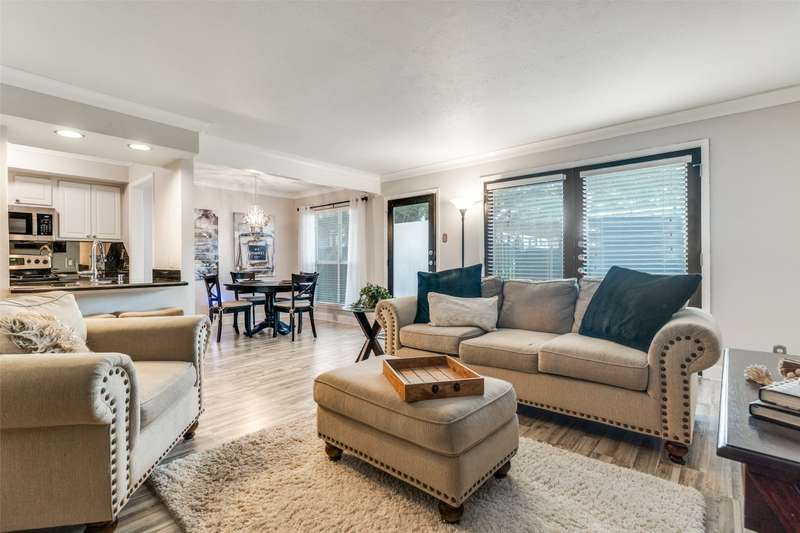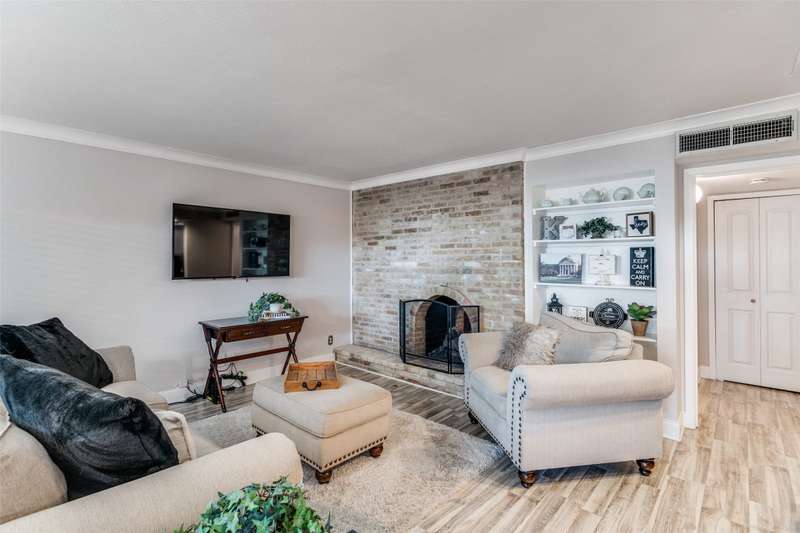 Welcome to this darling, rare GROUND LEVEL condominium located in the highly coveted Tuscany Condos! Kitchen with SS appliances opens to breakfast room and large living room with double sided, gas fireplace. Large primary bedroom with updated bath that boasts a shower bathtub combination. Tastefully updated and impeccably maintained, this home features laminate wood floors and tile flooring throughout (no carpet). TWO spacious outdoor areas perfect for pets and entertaining. One covered parking space just steps away from the front door. Ideally located near the community's tranquil fountain and resort-style pool. Numerous upgrades including 2020 HVAC, new refrigerator, new microwave, & fireplace gas log insert. Access to White Rock Lake & Katy Trail via Ridgewood Trail located behind the complex. PRIME Dallas location close to SMU, Downtown, and shops and restaurants!