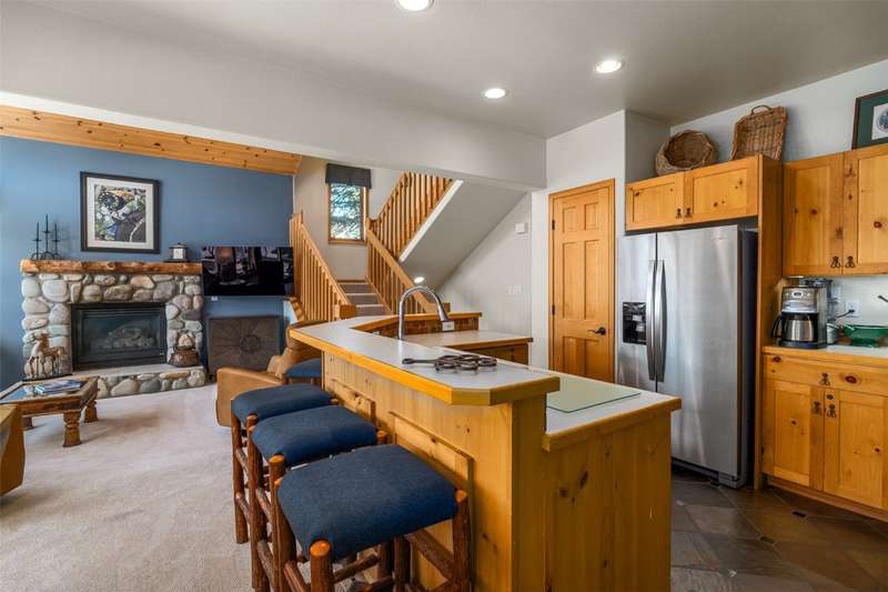Air Conditioned 4-Bedroom, 3.5-Bath Townhome at Elk Run. Nestled in a quiet and intimate community of only 12 townhomes, this beautifully designed townhome at Elk Run offers the perfect blend of comfort and luxury. Located off Medicine Springs Drive, just a short walk from the ski area, this home is ideally positioned for year-round mountain living. Enjoy easy access to the free bus and the community trail system, making outdoor adventures a breeze. Spanning over 2,100 square feet across three levels, this sun-filled home features large windows and vaulted ceilings that create an open, airy feel. The professionally designed interior boasts upgraded finishes throughout, including a stunning rock fireplace and a spacious, open floorplan perfect for both relaxing and entertaining. The kitchen and living areas seamlessly flow onto a deck, ideal for taking in the views. The large primary suite is graced with a gas fireplace for cozy nights. Completely furnished and move-in ready, the home includes modern amenities such as air conditioning, heated floors in the downstairs bathroom, new tankless gas hot water heater and a separate laundry room. The property also offers an on-demand ski shuttle service and access to a large community hot tub, perfect for unwinding after a day on the slopes. Situated in a Green Zone, this townhome is eligible for night rentals, with the potential to generate income. Don't miss this rare opportunity to own a luxurious, fully equipped townhome in one of the most sought-after locations in the area!