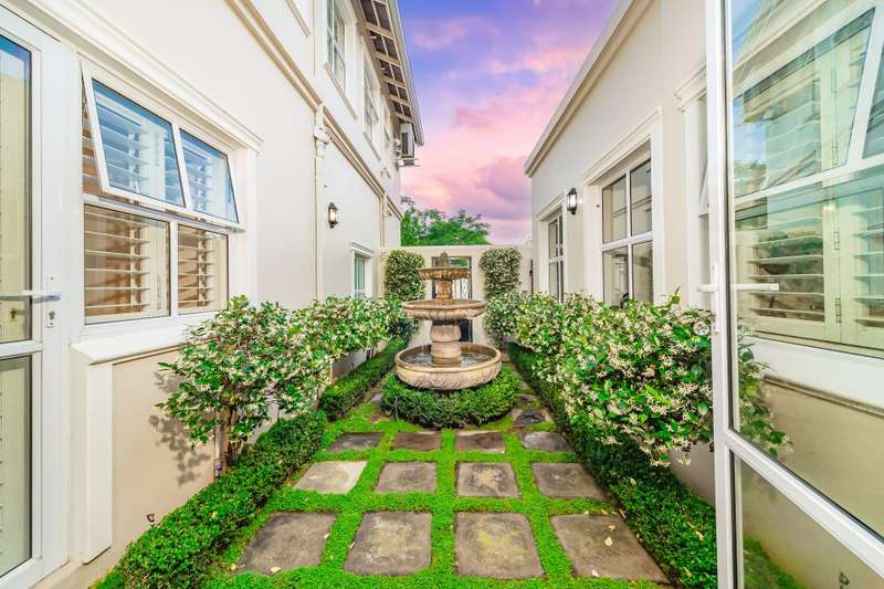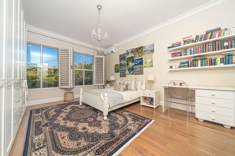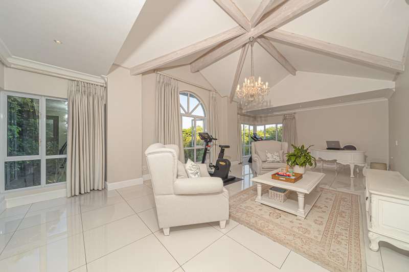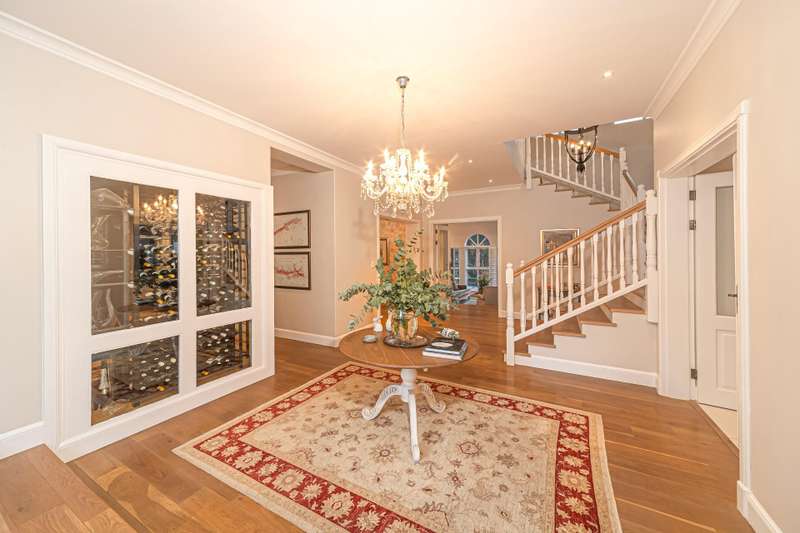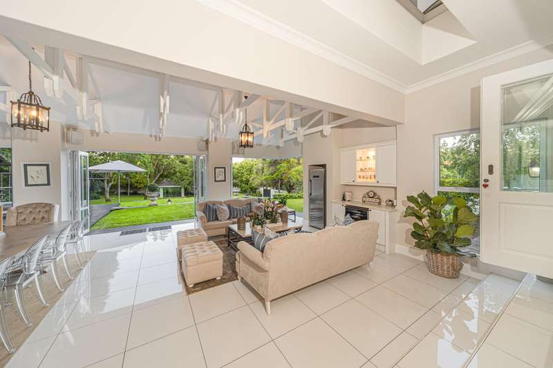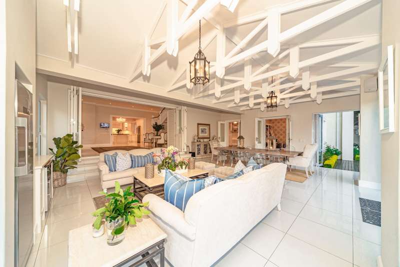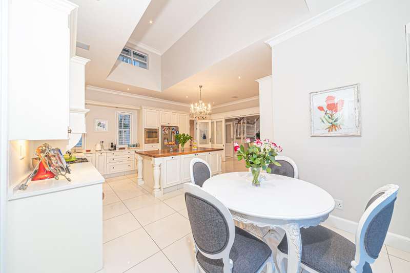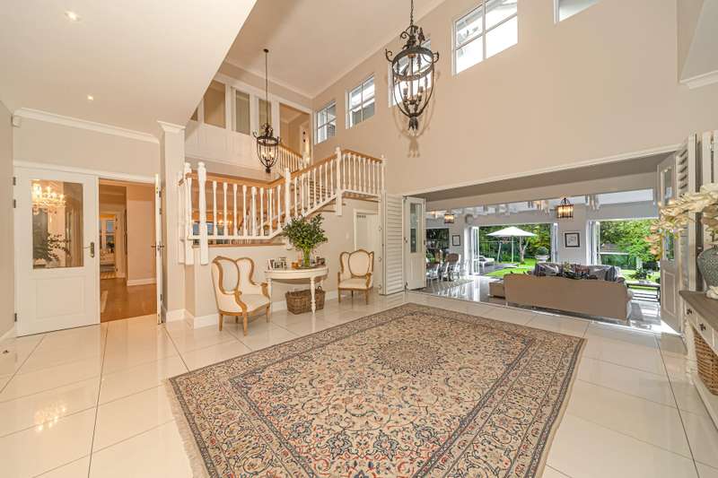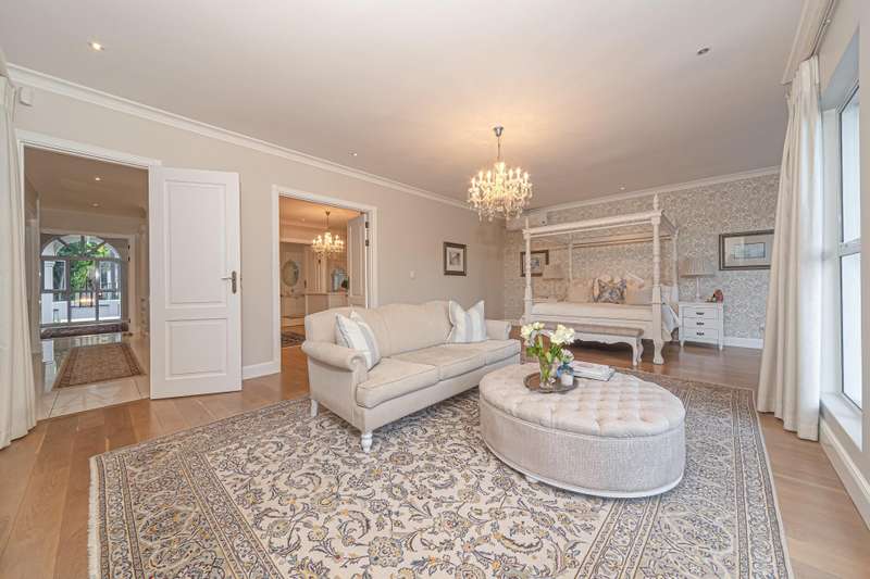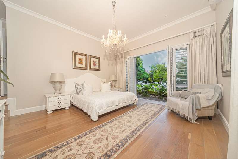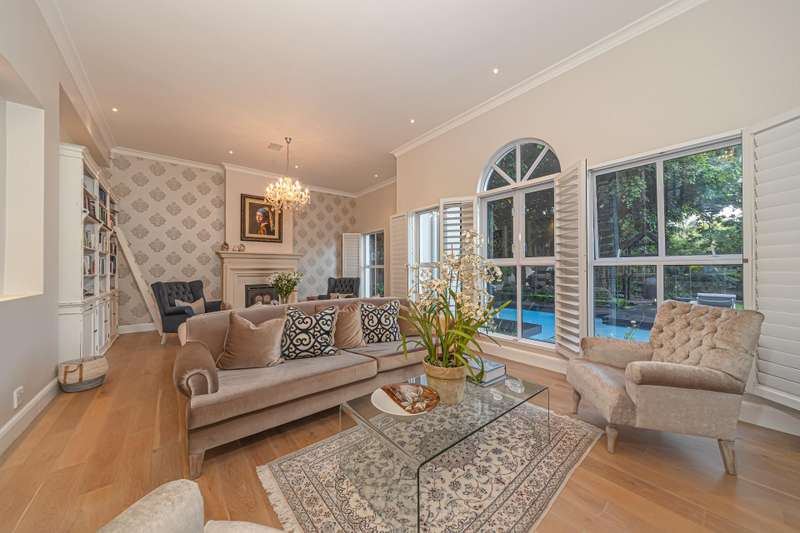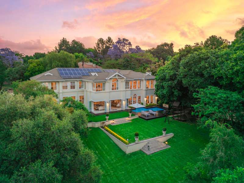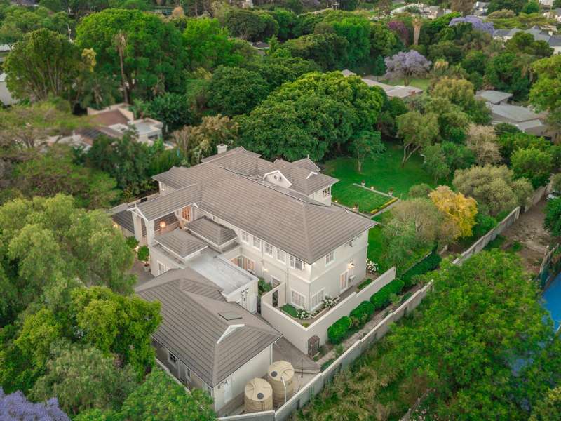Iconic Family Residence in Exclusive Eccleston Crescent Tucked away in a private, gated enclave of just four homes, this sun-filled masterpiece in Eccleston Crescent combines architectural elegance with luxurious comfort. Set within a mature, treed garden, this residence offers over 960 sqm of impeccable living space on a 3033 sqm stand, showcasing top-tier finishes and thoughtful design at every turn. Step through double doors into an inviting entrance hall with engineered oak flooring, leading to expansive reception areas designed for both grand entertaining and intimate family moments. The formal lounge features a Morso fireplace and opens seamlessly to a covered patio, while the dining room flows to a courtyard with a serene water feature. The heart of the home is a gourmet kitchen, complete with Caesar stone countertops, a central island, Smeg stove with gas hob, breakfast area, pantry, scullery, and separate laundry. Adjacent is a spacious family area, studio/playroom, and an ultra-stylish covered patio with exposed trusses, ideal for indoor-outdoor entertaining. Accommodation is designed with comfort and privacy in mind: ?Çó 4 luxurious bedroom suites, including a glamorous main suite with private lounge, dressing area, and opulent bathroom ?Çó Downstairs guest suite with dressing area and bathroom ?Çó Ultra-spacious pyjama lounge with study/homework area ?Çó Fitted study or optional 5th bedroom ?Çó Staff suite with full kitchen and sitting area ?Çó Art studio This property is as functional as it is beautiful, featuring: ?Çó Solar power: 36 panels, 2 x 12kWh inverters, 8 x 5.5kWh batteries ?Çó Pre-paid electricity & generator backup ?Çó Borehole with irrigation system and 2 x 10,000-litre reserve tanks ?Çó Secure perimeter: walls, alarm system, electric fencing, CCTV, and double gates Additional lifestyle features include: ?Çó Mature landscaped gardens and good-sized pool ?Çó Pool pavilion/gym ?Çó Air-conditioned wine cellar ?Çó Fireplaces, American shutters, and aluminium window/door frames Garaging for four cars, exquisite finishes throughout and an entertainer?ÇÖs covered patio make this a home that is both functional and unforgettable. This is modern luxury living at its finest, combining security, sophistication, and space for the whole family in one of the city?ÇÖs most prestigious enclaves.