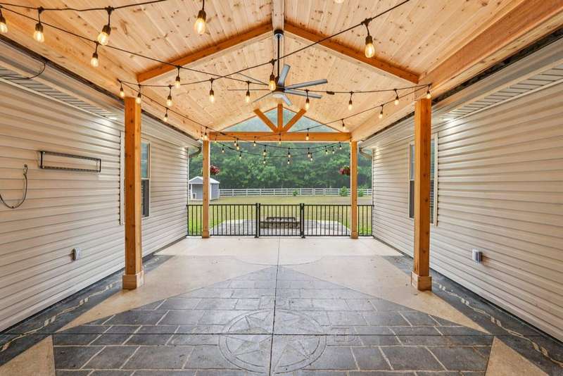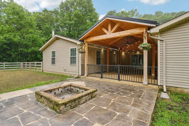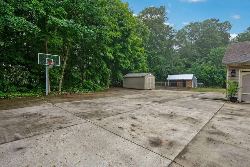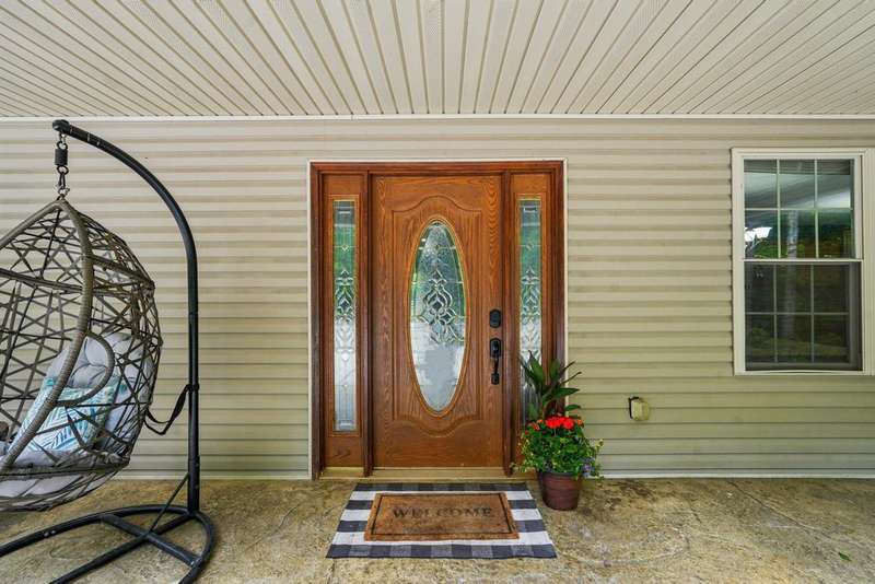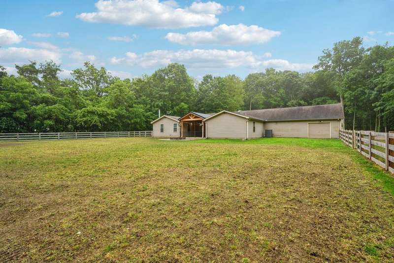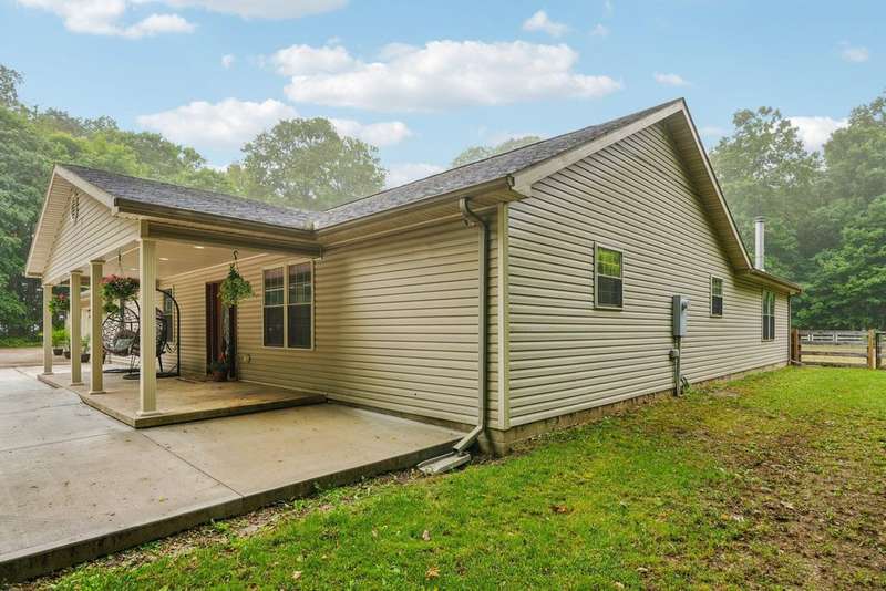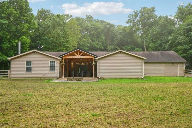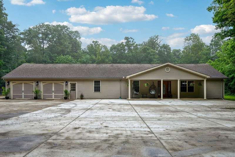 Tucked away down a winding, half-mile paved driveway & surrounded by over 7 WOODED ACRES, this hidden gem offers the kind of seclusion that's hard to come by. From the moment you reach the clearing & spot the charming covered front porch, you'll feel the world start to quiet down. Built in 2006 & thoughtfully designed w/ over 2,700 sq ft of living space, this 3-bedroom, 3-full bath ranch is made for comfortable living & effortless entertaining. The open layout flows easily from the living room to the dining area & into the spacious kitchen--then continues right into a cozy family room complete w/ a buck stove & wet bar. Imagine holidays, game nights, & quiet weekends all in one space. The owner's suite offers a welcome retreat w/ a walk-in closet & private bath. Two additional bedrooms are connected by a Jack & Jill bathroom, offering function & privacy. A third full bath is centrally located near the main living spaces for guests. The oversized 2-car garage is finished & includes a third overhead door at the rear of the home--perfect for easy access to the fenced backyard, mowing, or additional storage options. Step outside & the real magic continues, keep your eyes open--you'll spot deer, wild turkey, & other wildlife all year long. The courtyard-inspired covered patio offers both privacy & protection from the elements--perfect for grilling, lounging, or sipping coffee. The backyard is fully fenced, making it an ideal space for furry friends or play. The second fenced area w/ a small run-in animal shed & a chicken coop are great for a mini-farm, 4-H projects, or a homesteading setup. There's also an impressive parking area w/ plenty of room for extra toys, trailers, or even a game of basketball. There's storage to spare in the 10x14 shed, & updates like fresh interior paint, newer carpet, heat pump/AC (2024), a water softener, & that finished garage means you can move in without a to-do list. Tranquility, space, & complete privacy--it's more than a home. It's a dream.