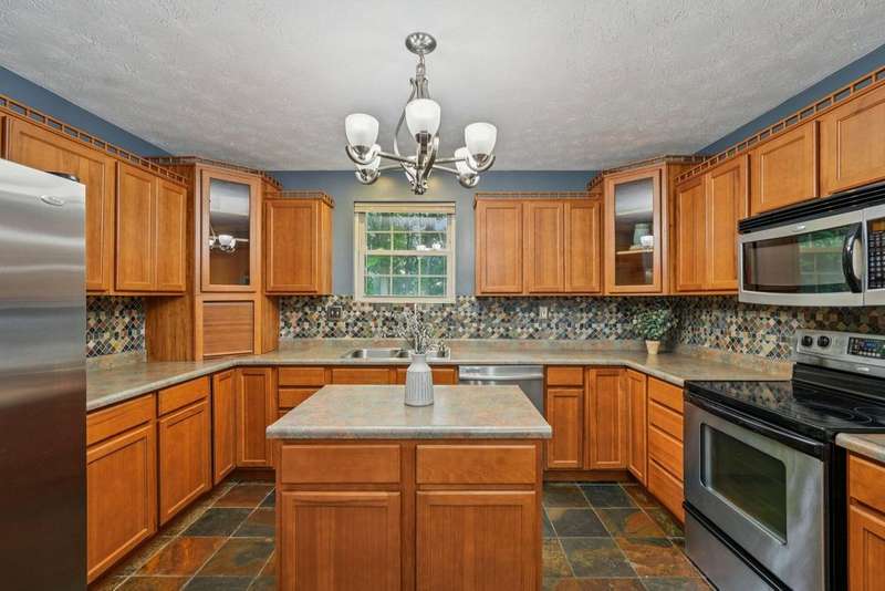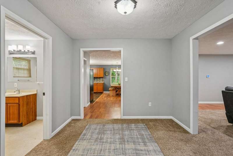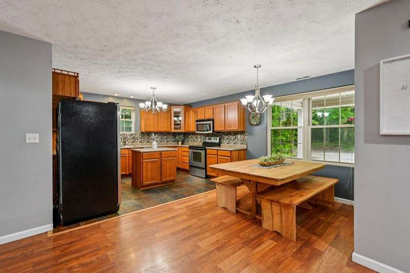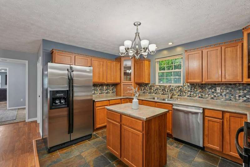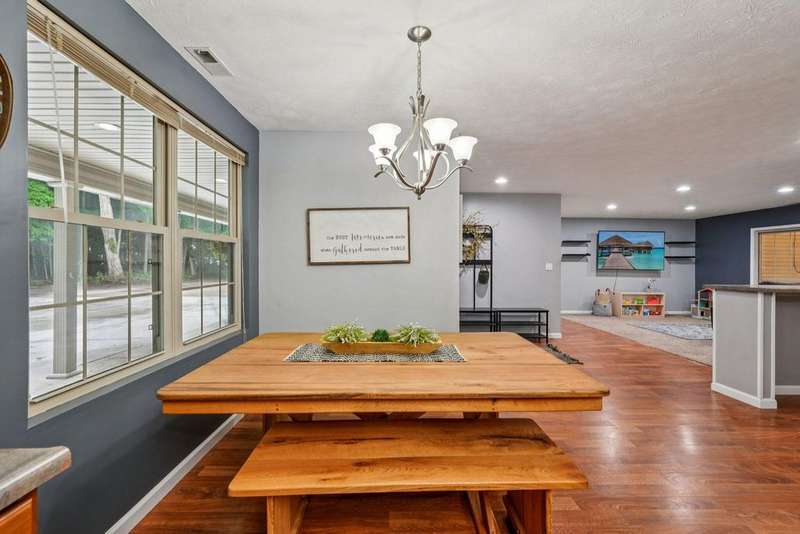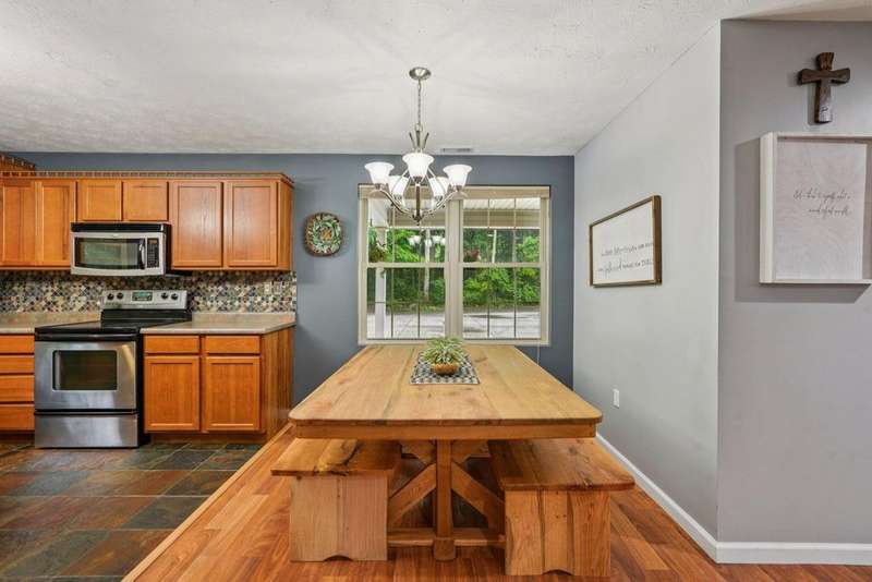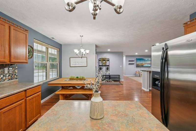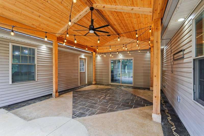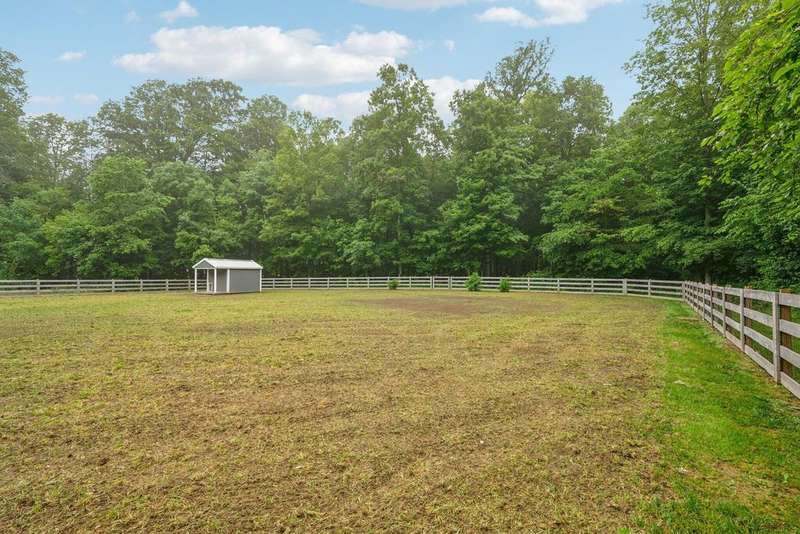 Tucked away down a winding, half-mile paved driveway & surrounded by over 7 WOODED ACRES, this hidden gem offers the kind of seclusion that's hard to come by. From the moment you reach the clearing & spot the charming covered front porch, you'll feel the world start to quiet down. Built in 2006 & thoughtfully designed w/ over 2,700 sq ft of living space, this 3-bedroom, 3-full bath ranch is made for comfortable living & effortless entertaining. The open layout flows easily from the living room to the dining area & into the spacious kitchen--then continues right into a cozy family room complete w/ a buck stove & wet bar. Imagine holidays, game nights, & quiet weekends all in one space. The owner's suite offers a welcome retreat w/ a walk-in closet & private bath. Two additional bedrooms are connected by a Jack & Jill bathroom, offering function & privacy. A third full bath is centrally located near the main living spaces for guests. The oversized 2-car garage is finished & includes a third overhead door at the rear of the home--perfect for easy access to the fenced backyard, mowing, or additional storage options. Step outside & the real magic continues, keep your eyes open--you'll spot deer, wild turkey, & other wildlife all year long. The courtyard-inspired covered patio offers both privacy & protection from the elements--perfect for grilling, lounging, or sipping coffee. The backyard is fully fenced, making it an ideal space for furry friends or play. The second fenced area w/ a small run-in animal shed & a chicken coop are great for a mini-farm, 4-H projects, or a homesteading setup. There's also an impressive parking area w/ plenty of room for extra toys, trailers, or even a game of basketball. There's storage to spare in the 10x14 shed, & updates like fresh interior paint, newer carpet, heat pump/AC (2024), a water softener, & that finished garage means you can move in without a to-do list. Tranquility, space, & complete privacy--it's more than a home. It's a dream.