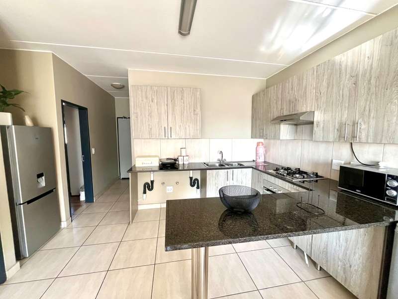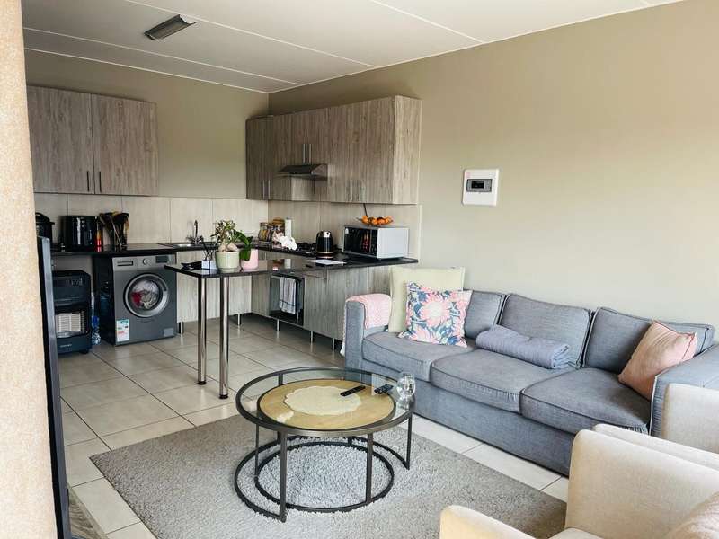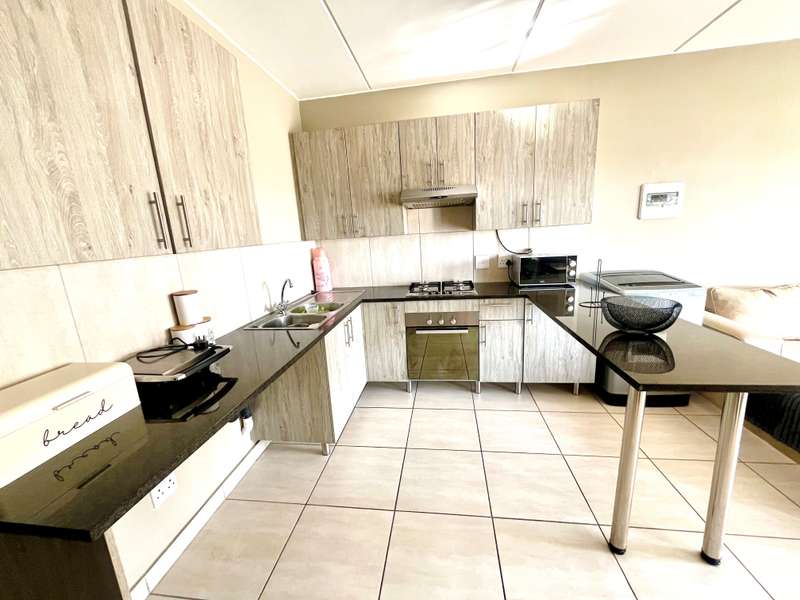 This magnificent 2 bedrooms apartment is located in a sought after estate away from traffic. You'll easily have access to Gautrain, the best schools, shopping centres including Mall of Africa, and also easy access to Major highways like N1, M1 and N3. The apartment boasts an open plan kitchen with modern built-in cupboards ,fitted with a 4 plate gas stove. There are 2 connection points for the washing machine and a dishwasher. The lounge is open plan and has a sliding door leading to the balcony where you can sit and enjoy the sun. The bathroom is spacious and has a bath tub and a shower. Book a viewing appointment today!