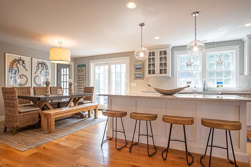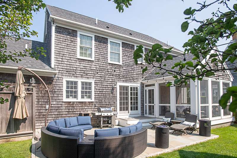 This impeccably maintained five bedroom, five and 2 half-bath home, offers three levels of thoughtfully designed living space, including a finished lower level, a charming screened-in porch, a spacious backyard, and a generously sized shed. The first floor features a luxurious primary suite, a bright and airy living room with custom shiplap accents and a gas fireplace, an open-concept kitchen equipped with high-end appliances, and a well-appointed mudroom with laundry, secondary fridge, wine fridge, ice maker and a convenient half bath. Lovingly cared for by a single owner and never rented, this move-in-ready home is offered mostly furnished. Located within a vibrant community, residents enjoy access to a swimming pool, two tennis courts, a new pickleball court, and a playground making it an ideal retreat for year-round or seasonal living.