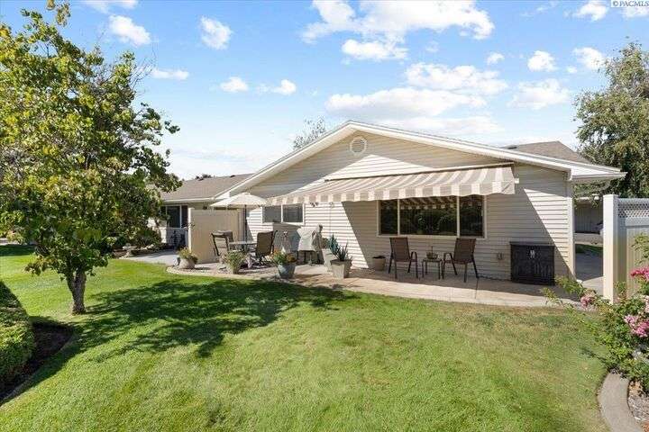 MLS# 286618 Welcome to Highlands Village! This beautifully maintained 1,152 sq. ft. condo offers 3 bedrooms and 2 bathrooms, thoughtfully updated for comfort and style. The recently remodeled kitchen features new cabinets, counters, flooring, and appliances. Additional upgrades include a 2022 Lenox HVAC system, 2023 water heater, and professionally applied exterior privacy window film in 2025. Enjoy easy living with new flooring throughout, refreshed bathrooms—including a walk-in shower—and an extended patio with a retractable awning, perfect for relaxing outdoors without the upkeep of a large yard.Located in one of Kennewick’s most desirable condo communities, Highlands Village offers exceptional amenities: clubhouse, pool, and expansive green space. HOA services include lawn care, snow removal, water, sewer and garbage and community maintenance for a truly low-maintenance lifestyle.Sale includes kitchen appliances plus washer and dryer—making this home move-in ready. Don’t miss the opportunity to own a stylish, updated condo in a well-cared-for community.