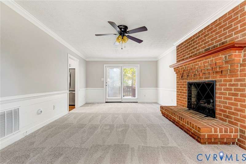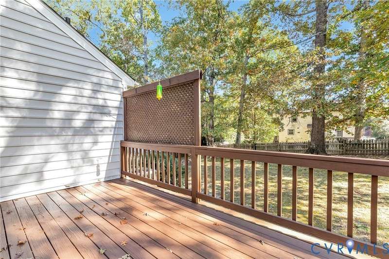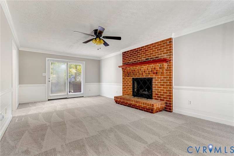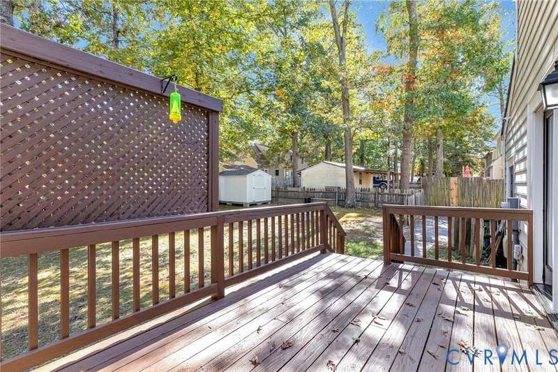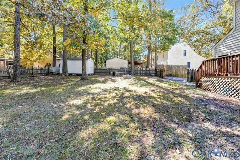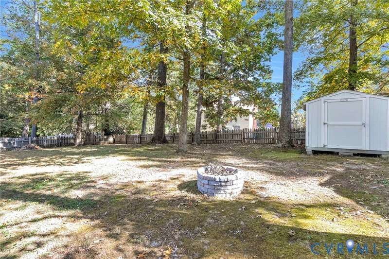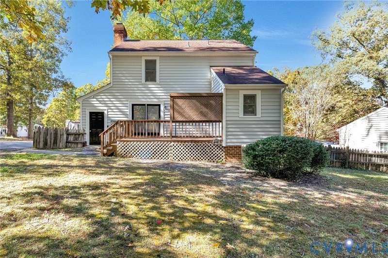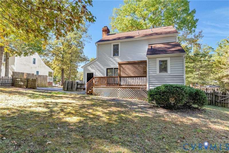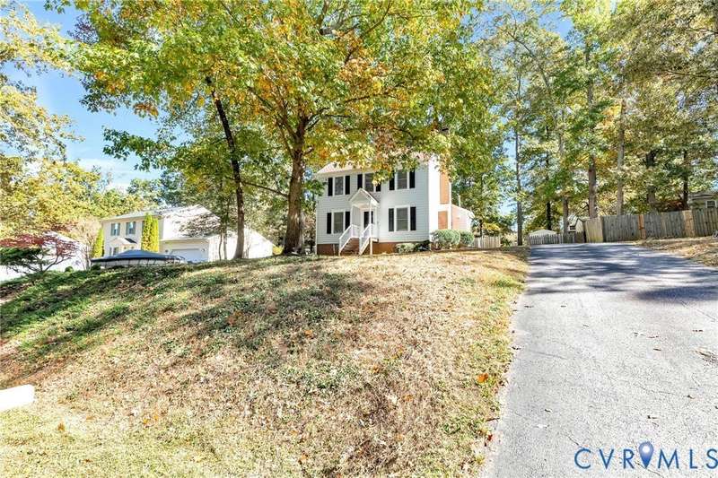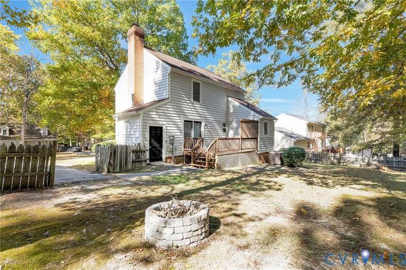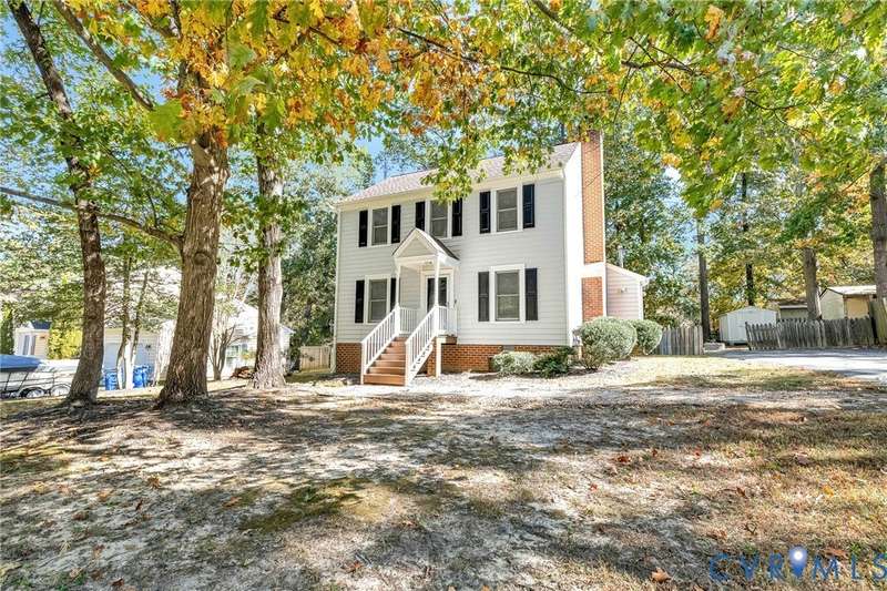 Welcome to 14413 Eagle Rock Avenue in Chester! This charming 2-story Colonial offers 3 bedrooms, 2.5 bathrooms & over 1,500 sq ft of comfortable living space. You'll appreciate the inviting curb appeal featuring a paved driveway, covered front stoop, vinyl siding with shutters, gutters & dimensional roofing. The fenced backyard provides mature shade trees, a storage shed, a brick fire pit & a freshly painted deck-perfect for relaxing or entertaining. Step inside to a welcoming foyer that opens to a spacious family room with crown & chair rail molding, a cozy brick gas fireplace & double doors leading to the back deck. The formal dining room connects seamlessly to the updated kitchen, which boasts granite countertops, white cabinetry, stainless steel appliances, a flat-top electric range & ample storage space. Off the kitchen, you'll find a convenient laundry room with built-in shelving, a pantry & a half bath. Upstairs, the carpeted second level hosts three comfortable bedrooms, including a primary suite with a walk-in closet & private bath featuring a double vanity & tub/shower combo. Two additional bedrooms each include double-door closets & ceiling fans, sharing a full hall bath with a tub/shower combo & linen storage. Additional highlights include a new gas water heater, electric heat pump, pull-down attic access & both attached & detached outdoor storage. This well-maintained home blends comfort, function & charm-ready for its next owner to enjoy.