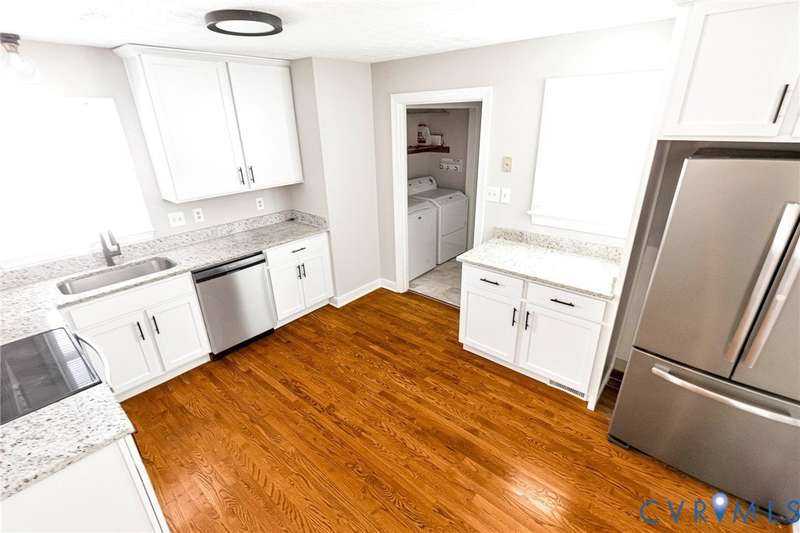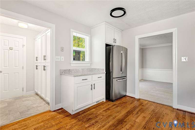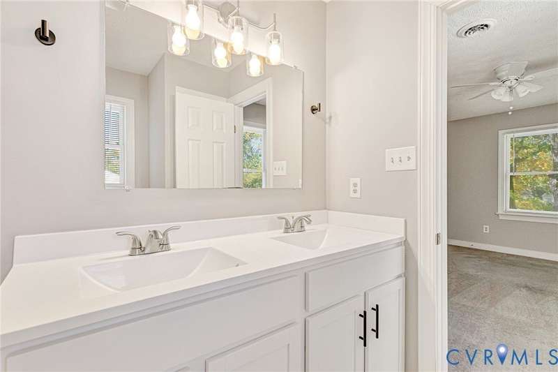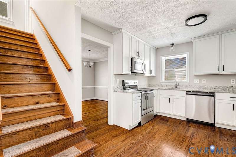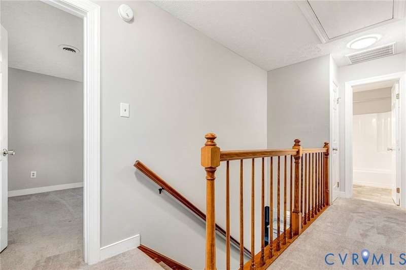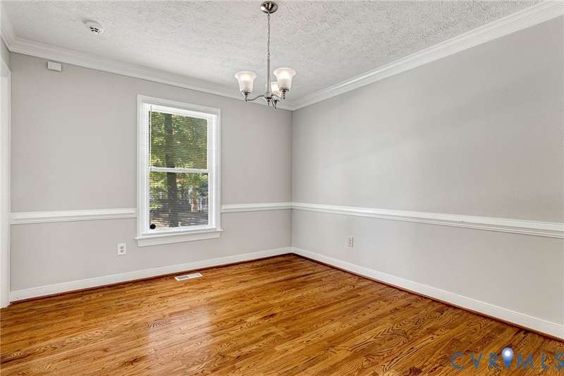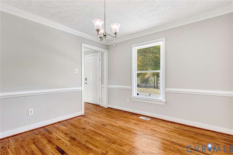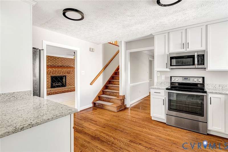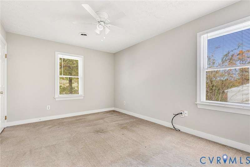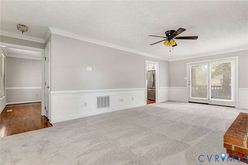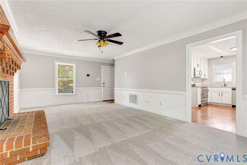 Welcome to 14413 Eagle Rock Avenue in Chester! This charming 2-story Colonial offers 3 bedrooms, 2.5 bathrooms & over 1,500 sq ft of comfortable living space. You'll appreciate the inviting curb appeal featuring a paved driveway, covered front stoop, vinyl siding with shutters, gutters & dimensional roofing. The fenced backyard provides mature shade trees, a storage shed, a brick fire pit & a freshly painted deck-perfect for relaxing or entertaining. Step inside to a welcoming foyer that opens to a spacious family room with crown & chair rail molding, a cozy brick gas fireplace & double doors leading to the back deck. The formal dining room connects seamlessly to the updated kitchen, which boasts granite countertops, white cabinetry, stainless steel appliances, a flat-top electric range & ample storage space. Off the kitchen, you'll find a convenient laundry room with built-in shelving, a pantry & a half bath. Upstairs, the carpeted second level hosts three comfortable bedrooms, including a primary suite with a walk-in closet & private bath featuring a double vanity & tub/shower combo. Two additional bedrooms each include double-door closets & ceiling fans, sharing a full hall bath with a tub/shower combo & linen storage. Additional highlights include a new gas water heater, electric heat pump, pull-down attic access & both attached & detached outdoor storage. This well-maintained home blends comfort, function & charm-ready for its next owner to enjoy.