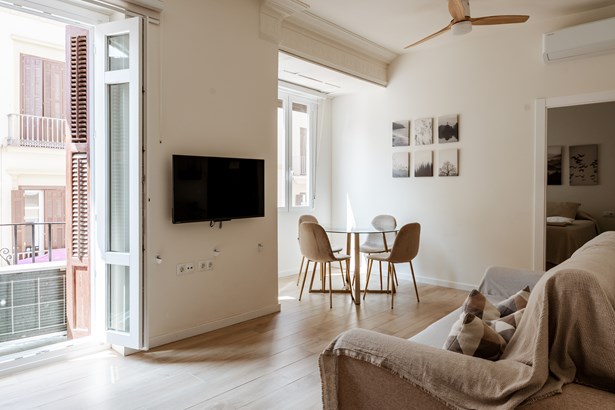 Located in the very heart of Málaga’s historic center, this 100 m² apartment offers the perfect blend of comfort, natural light, and unbeatable location. Fully furnished and move-in ready, it is ideal as a primary residence, a holiday home, or a high-yield investment property.The interior layout is designed for both functionality and comfort, featuring three spacious bedrooms and two full bathrooms. A unique highlight is the presence of two fully equipped kitchens, providing added flexibility for families, entertaining, or even short-term rentals.With a south-facing orientation and large exterior windows, the apartment enjoys abundant natural light throughout the day. Several balconies offer open views and a direct connection to the vibrant city atmosphere, while double-glazed windows ensure excellent thermal and acoustic insulation.Equipped with centralized air conditioning, high-speed internet, satellite TV, a security alarm system, and a reinforced entrance door, the property