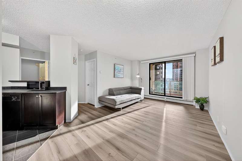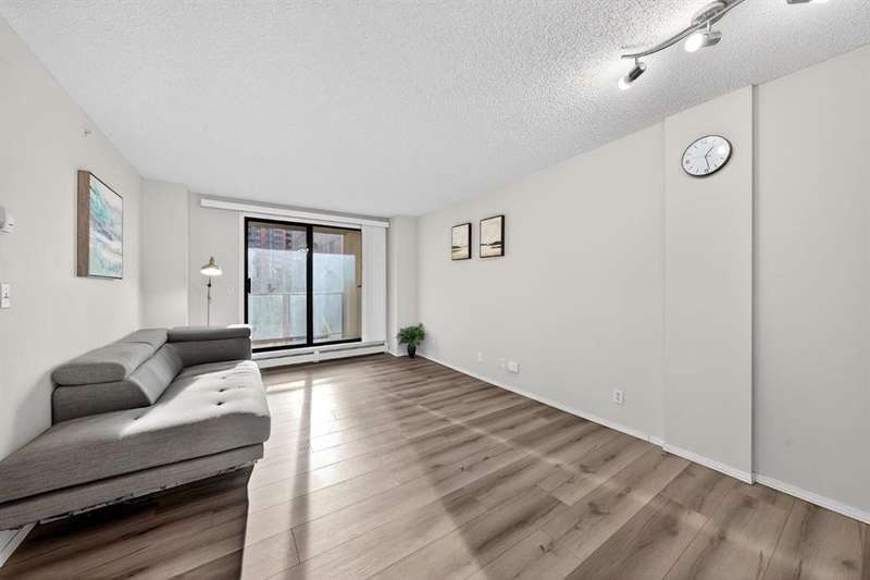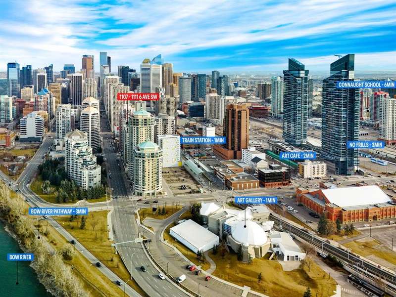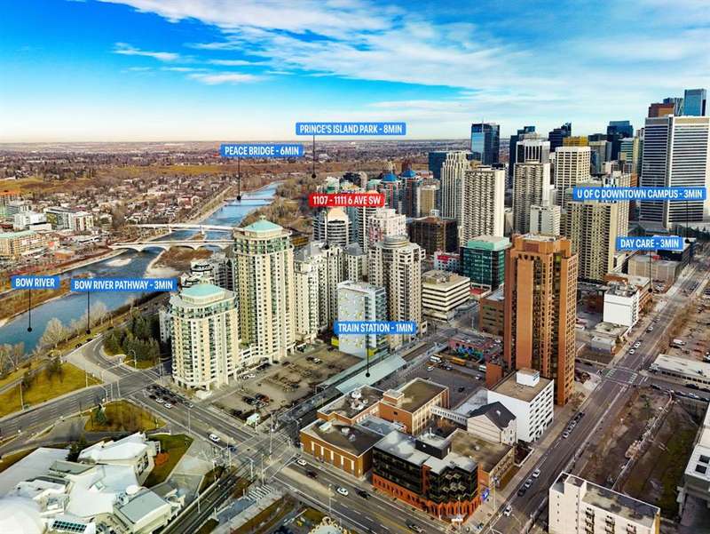 Welcome to the unit 1107 in one of the most sought after buildings of downtown. This bright and sunny 1-bedroom suite offers the perfect blend of comfort, convenience, and modern style. The open-concept layout creates an inviting flow from the kitchen to the living area, leading out to your private balcony—ideal for morning coffee, evening wind-downs, or simply soaking in the city vibe.Enjoy the ease of in-suite laundry, a well-sized bedroom, and a full bathroom. Located conveniently next to the elevators, this unit combines effortless access with elevated privacy.The building’s all-inclusive condo fees cover your utilities. Step outside and you’re moments away from the Bow River pathways, art galleries, cafes, grocery stores, daycares, and the Free Fare Transit Zone, ensuring seamless commutes throughout downtown.Whether you’re a professional who wants to live steps from work and nature, or an investor seeking a high-demand rental property, this home checks all the boxes. Move-in ready, lifestyle-friendly, and perfectly located—your downtown Calgary opportunity awaits.