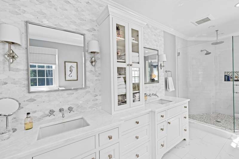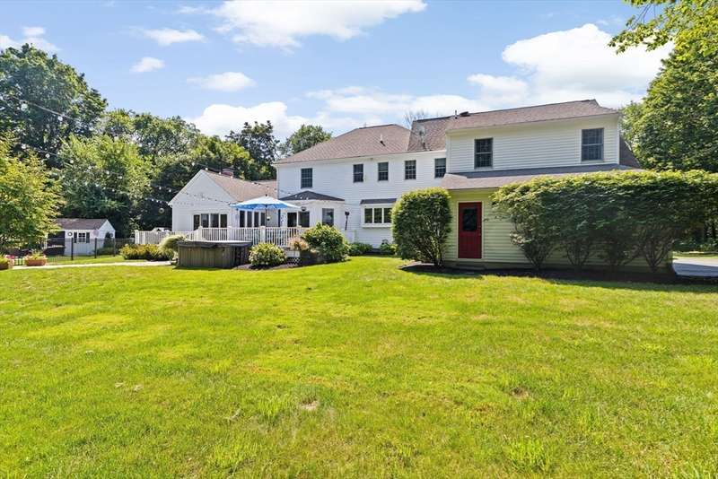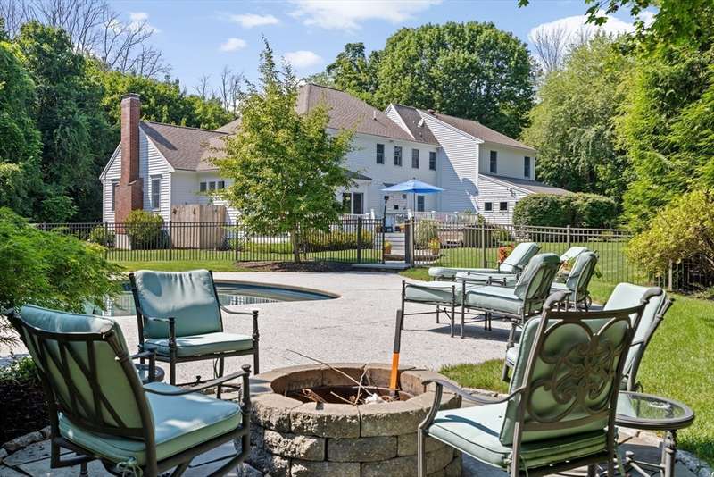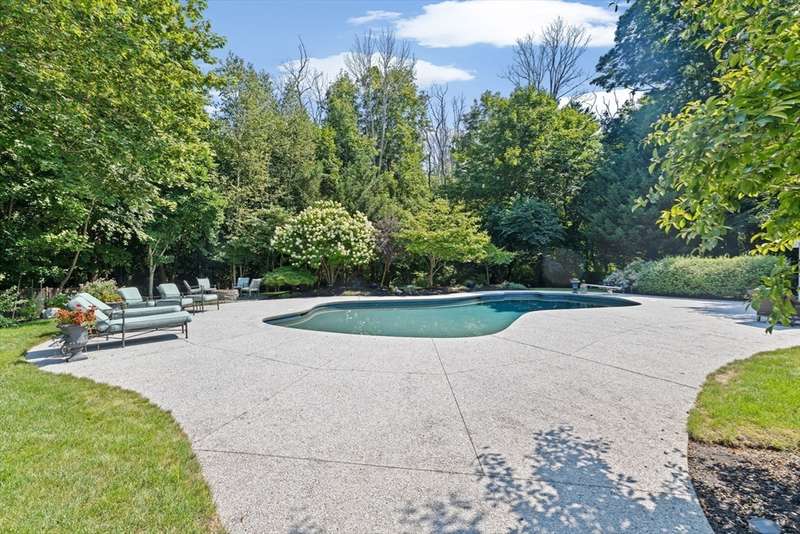 Expansive Colonial gracefully sited on 2.34 acres of private, manicured grounds and showcases timeless elegance paired with modern sophistication. Boasting 4 spacious bedrooms and 3.5 baths, this home has been thoughtfully designed and impeccably maintained to meet the highest standards of luxury living.Modern kitchen is the heart of the home, featuring custom cabinetry, premium appliances, and a striking design that opens seamlessly into the sun-drenched living room with stunning fireplace. The private primary suite is a true retreat, offering a spa-inspired bath with refined finishes and an expansive custom dressing room. Three additional generously proportioned bedrooms complete the second floor, each offering comfort and styleExpansive finished basement with full bath. A four-season room at the rear of the home provides views of the lush landscape and invites effortless indoor-outdoor living.Outdoor oasis highlighted by an in-ground gunite pool, firepit, outdoor shower & hot tub.