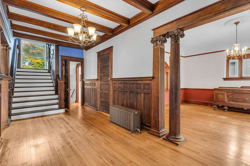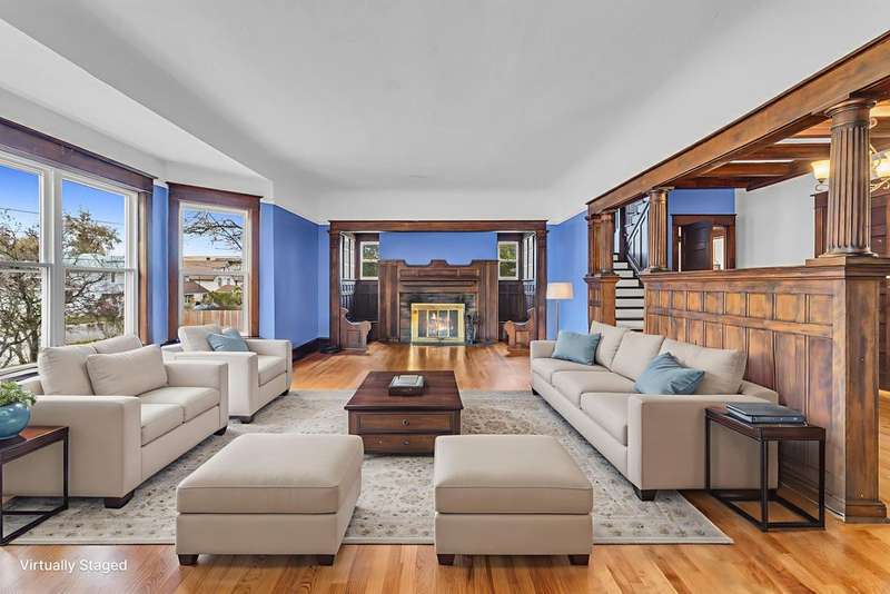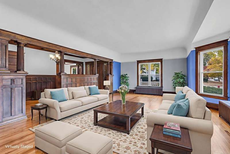 Beautiful 3 Story Home located in the area of historic homes offering 5-6 Bedrooms, 4.5 Bathrooms w/3 bonus rooms (home office, den, play room). Exquisite woodwork throughout, gleaming hardwood floors, grand staircase to both 2nd & 3rd floors and a finished basement. Garage and Carport w/ new roof (2018) can easily accommodate 3 cars and additional parking. Updated kitchen (2019), new dishwasher (2025), butler pantry leads to formal dining room. A grand living room with Fireplace. Electrical updated throughout the home in 2014 and in 2018 all outlets were updated. 3 bathrooms updated. Spacious bedrooms, primary bedroom includes fireplace. Pride of ownership is evident throughout. Taxes are based on non-owner occupant.