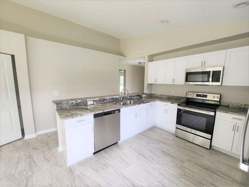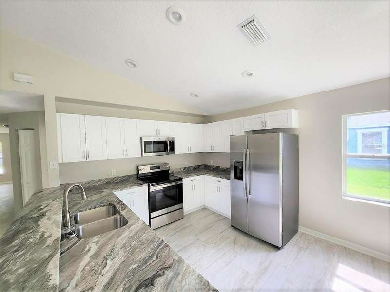 Located on a cal-de-sac steps away from Bell Lake this 4 bedroom 2 bath home is a must see! Fresh exterior paint and a cute front porch will immediately make you feel right at home! As you step inside you will enter the formal living room, which could be used as a sitting area, play area, or an office. Down the hall to the left is one of the 4 bedrooms, to the right 2 bedrooms, and the main bathroom. As you continue, you will enter the spacious kitchen/living space. This fully updated kitchen features granite countertops, all new cabinetry, stainless steel appliances, breakfast bar, and a pantry for additional storage. There is room for a table before entering the open and roomy family room. Large glass sliding doors allow for ample natural light and lead to the concrete patio and back yard. The master bedroom is situated at the back of the home and features ample closet space, ceiling fan, sliding glass doors to the back patio, and an ensuite master bathroom! Both bathrooms have tub/shower combos, granite countertops and new vanities. Newer tile floors. This house is ready to be your home! Washer and Dryer hook-ups are located in the one car garage at the front of the home. Professionally Managed by Dennis Property Management. Review tenant criteria and application on Dennis Property Management's website prior to scheduling a tour. $75 App Fee/Adult, First Months Rent, Security Deposit Equal to One Month's Rent, $75 Tenant Annual Processing Fee Per Household After Acceptance, Renters Insurance Required.
