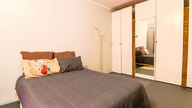 The third bedroom has built-in cupboards and a sliding door leading out onto a small patio.