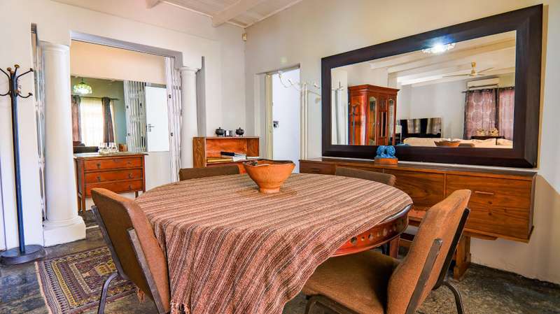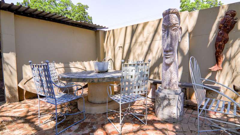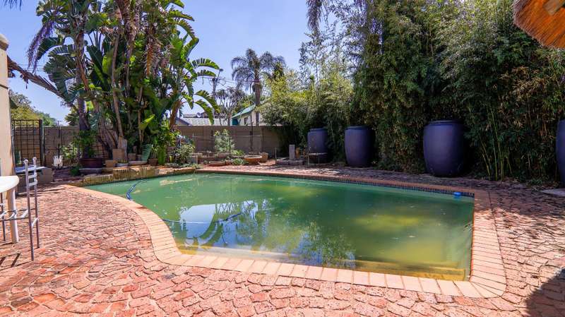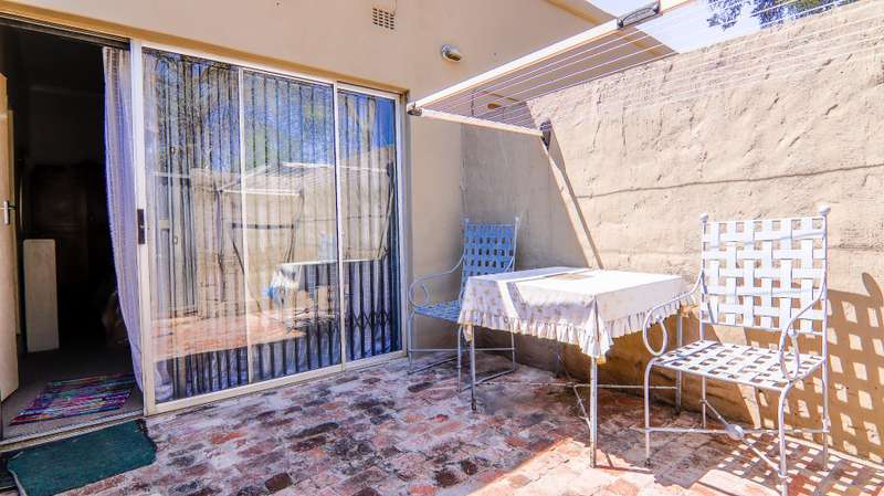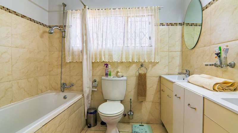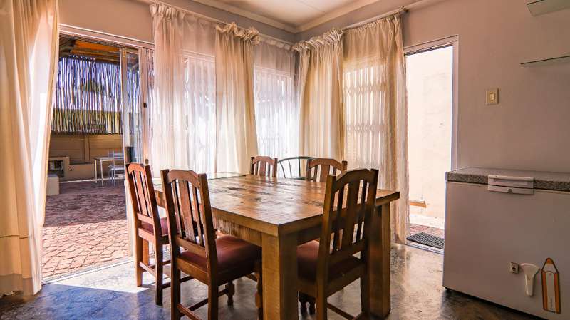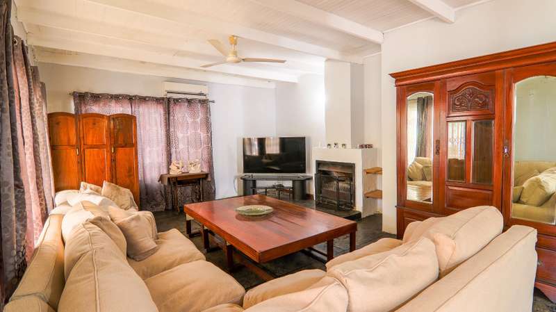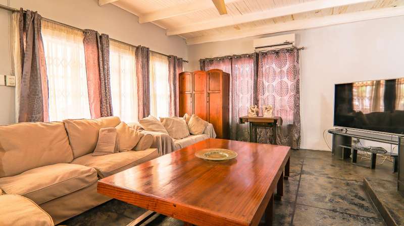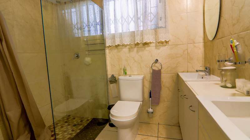 The Main bedroom comes with built-in cupboards, ceiling fan and air-conditioning system and an en-suite bathroom. This too has a sliding door leading out onto the swimming pool and lapa.