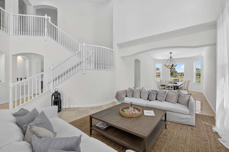 Enjoy breathtaking lake views and stunning sunsets from this beautifully designed home. Nestled in a serene setting rich with birdlife, this property offers a full bedroom and bath on the main level, along with generously sized bedrooms throughout. Large kitchen to gather with friends and family, gorgeous kitchen island, plenty of cabinets . The second floor features a private on suite bedroom and an extra-large main suite with his and hers closets. Located just minutes from the Winter Equestrian Festival, National Polo Center, and all equestrian venues, this home is the perfect blend of comfort, nature, and convenience.